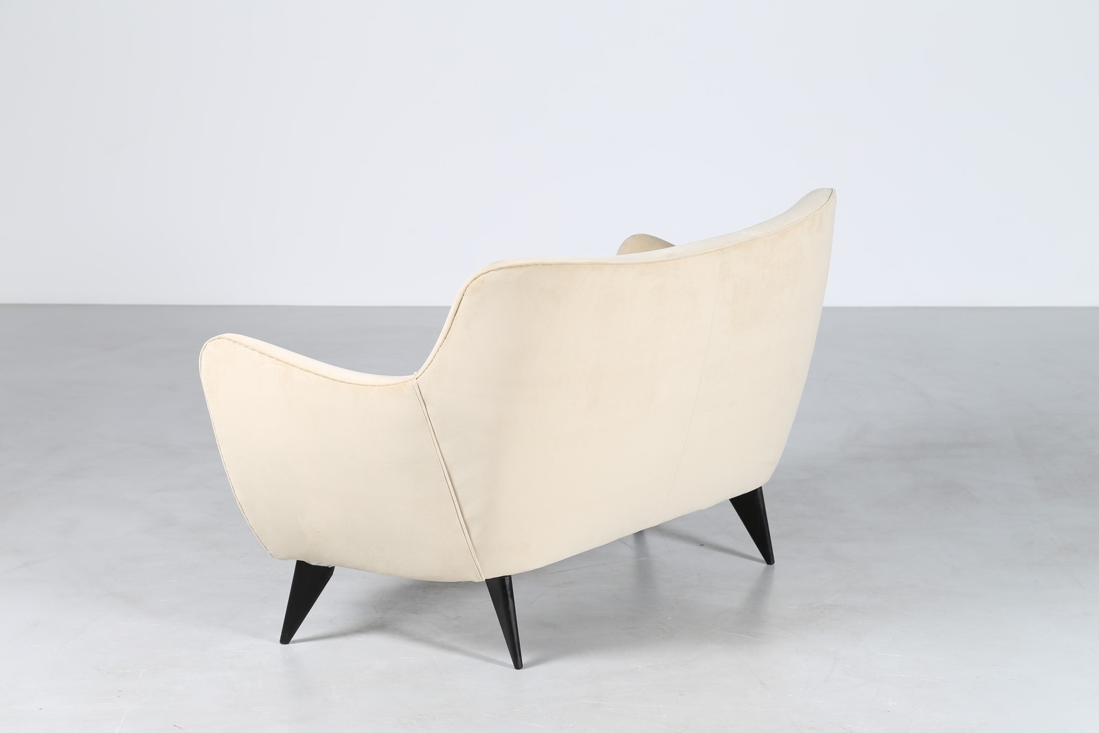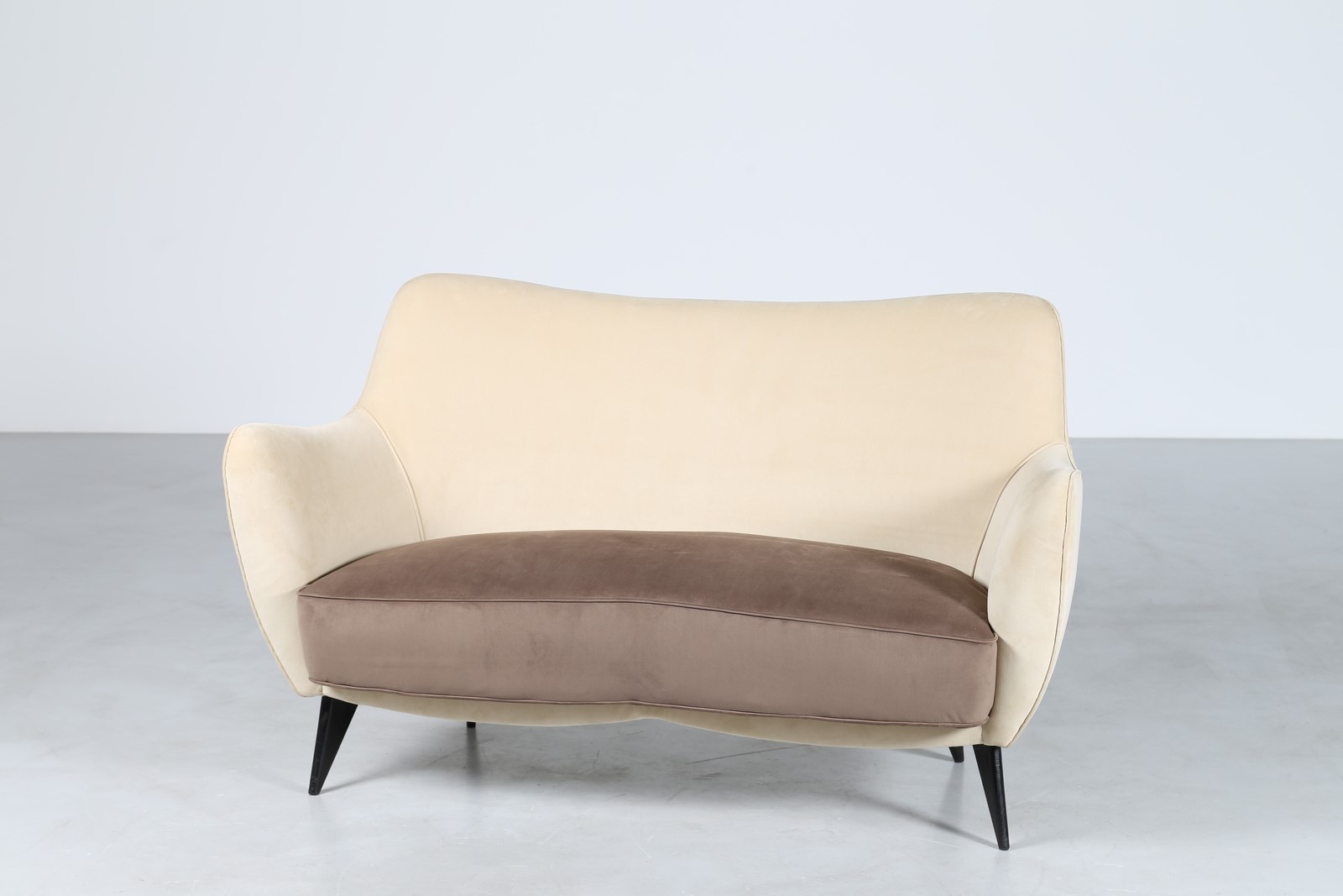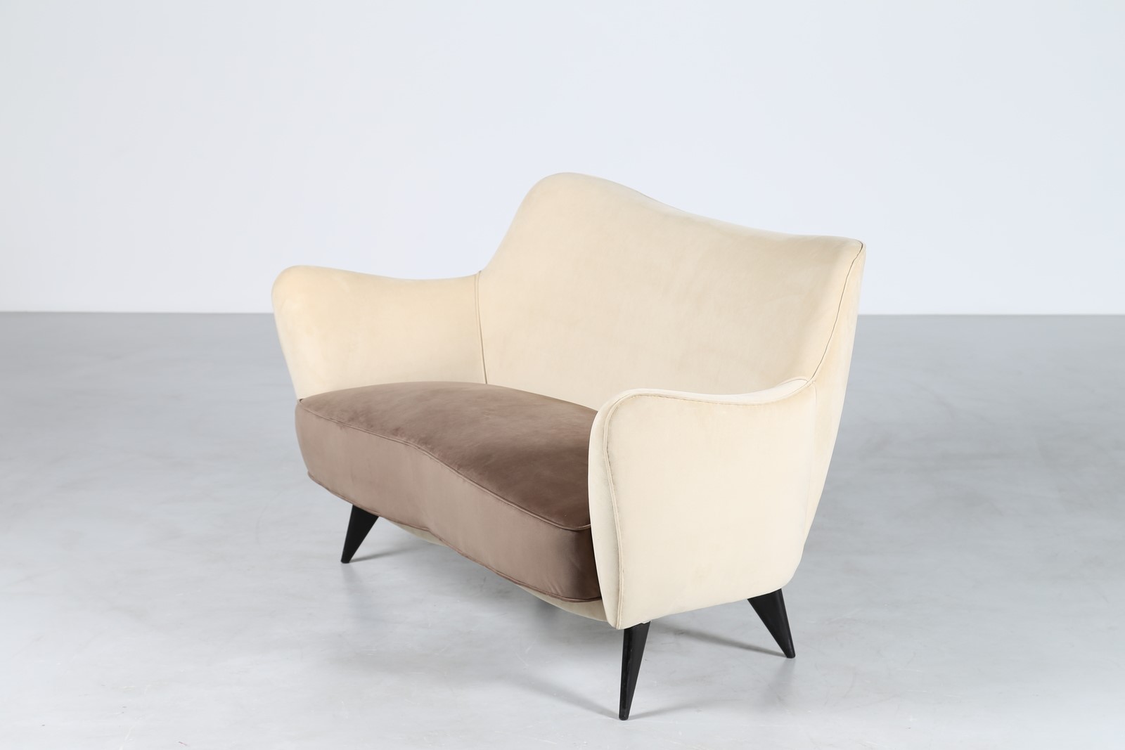 VERONESI GUGLIELMO Divano con struttura in legno, imbottitura rivestita in velluto. mod. Perla, per Isa anni 50. Pubblicazioni; Domus num. 247 settembre 1952 pag. 4. . -. Cm 148,00 x 86,00 x 80,00.