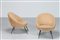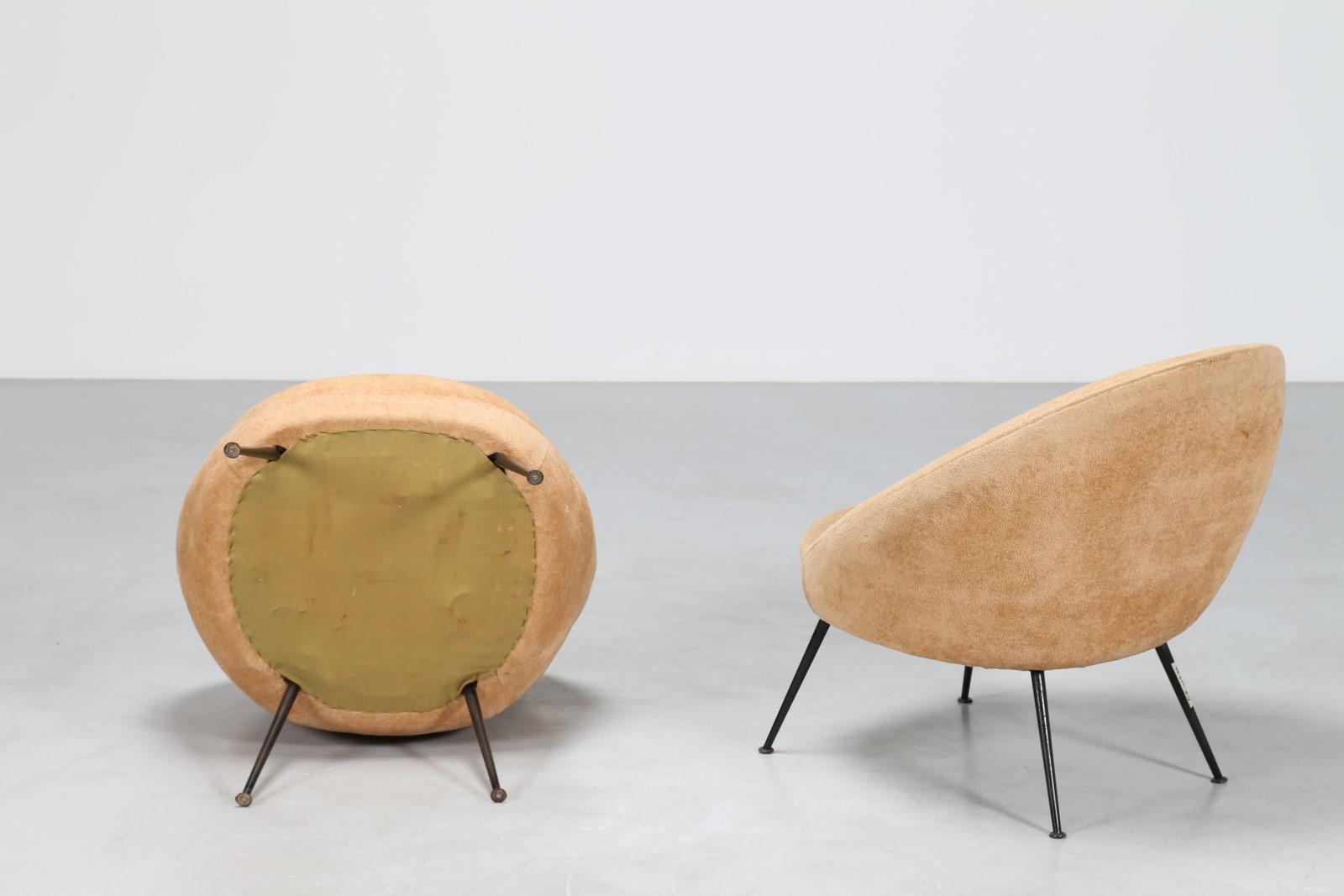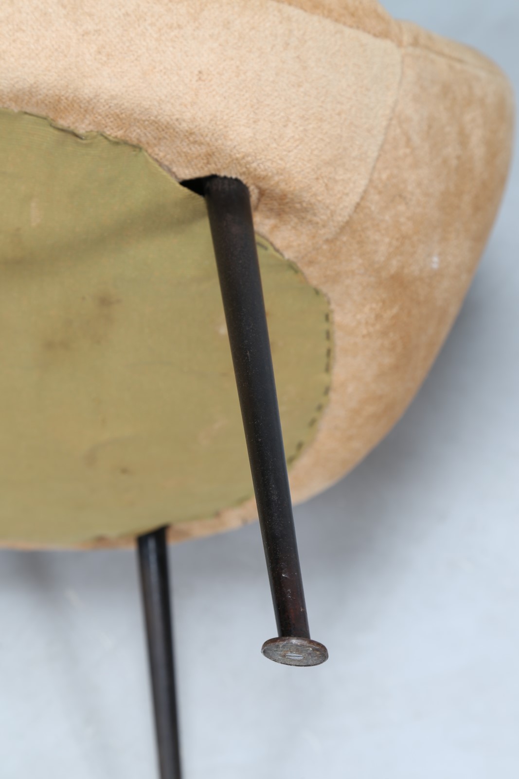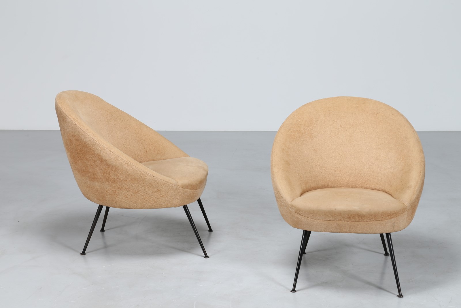 MUNARI FEDERICO Coppia di poltrone rivestite in ciniglia originale con gambe in metallo, per Poltrone in Pelle Federico Munari, anni 50 . -. Cm 71,00 x 76,00 x 75,00.