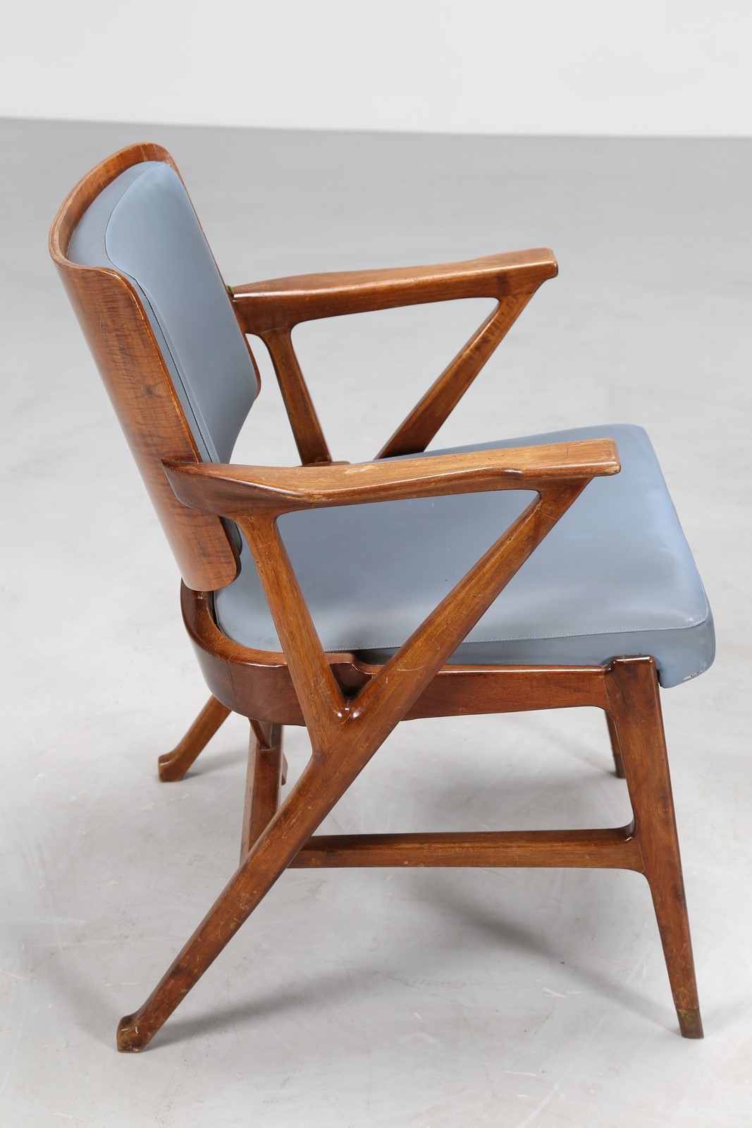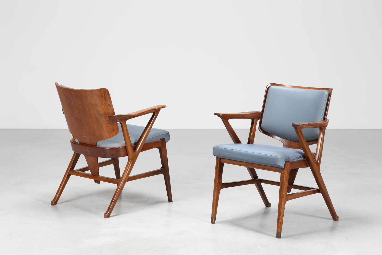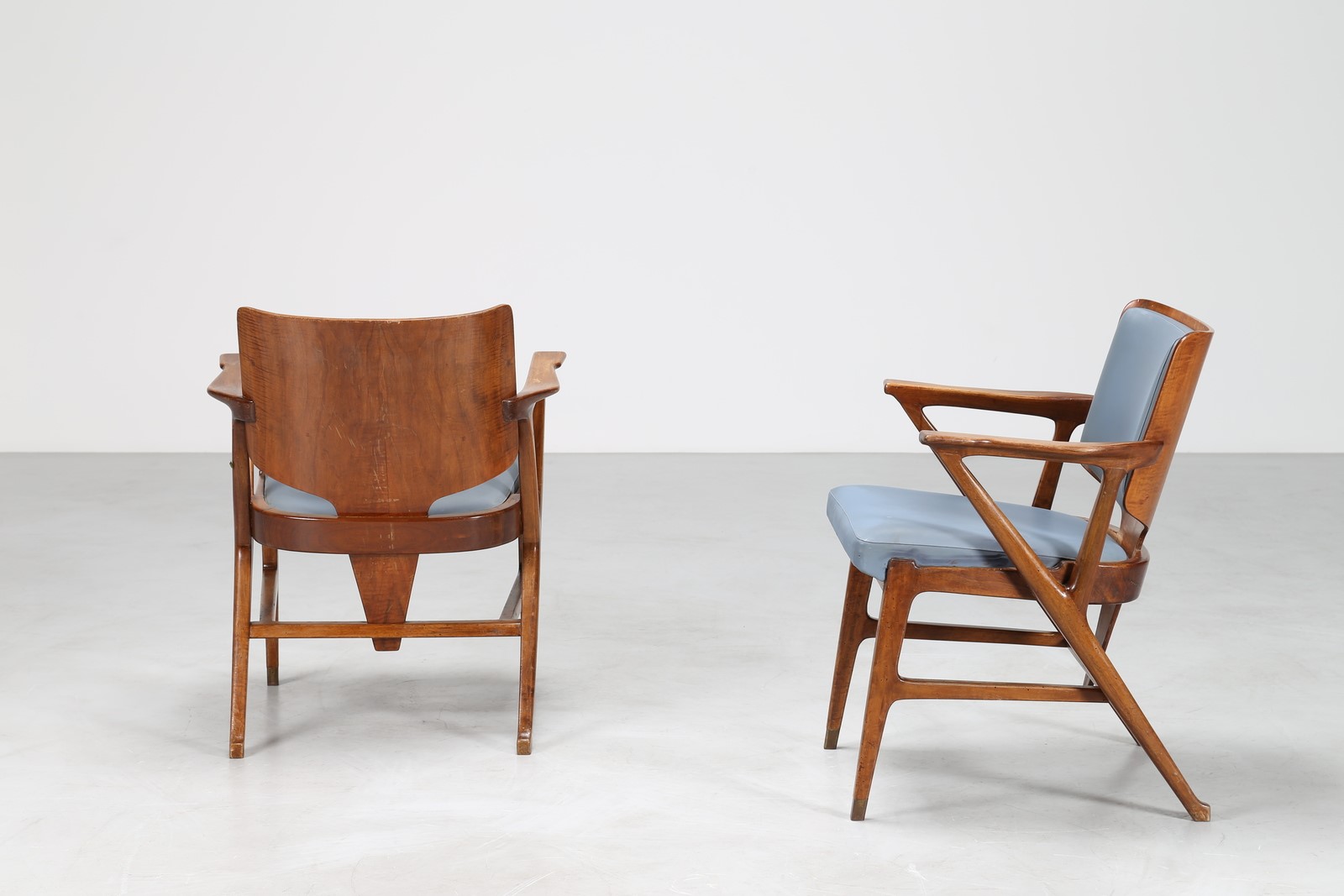 CIUTI ENRICO (n. 1910) Due poltroncine in noce e sky, per albergo termale del centro Italia, per Figli di Amedeo Cassina. Collaborazione tra il 1948/55. . -. Cm 59,00 x 75,00 x 52,00. Etichetta presente