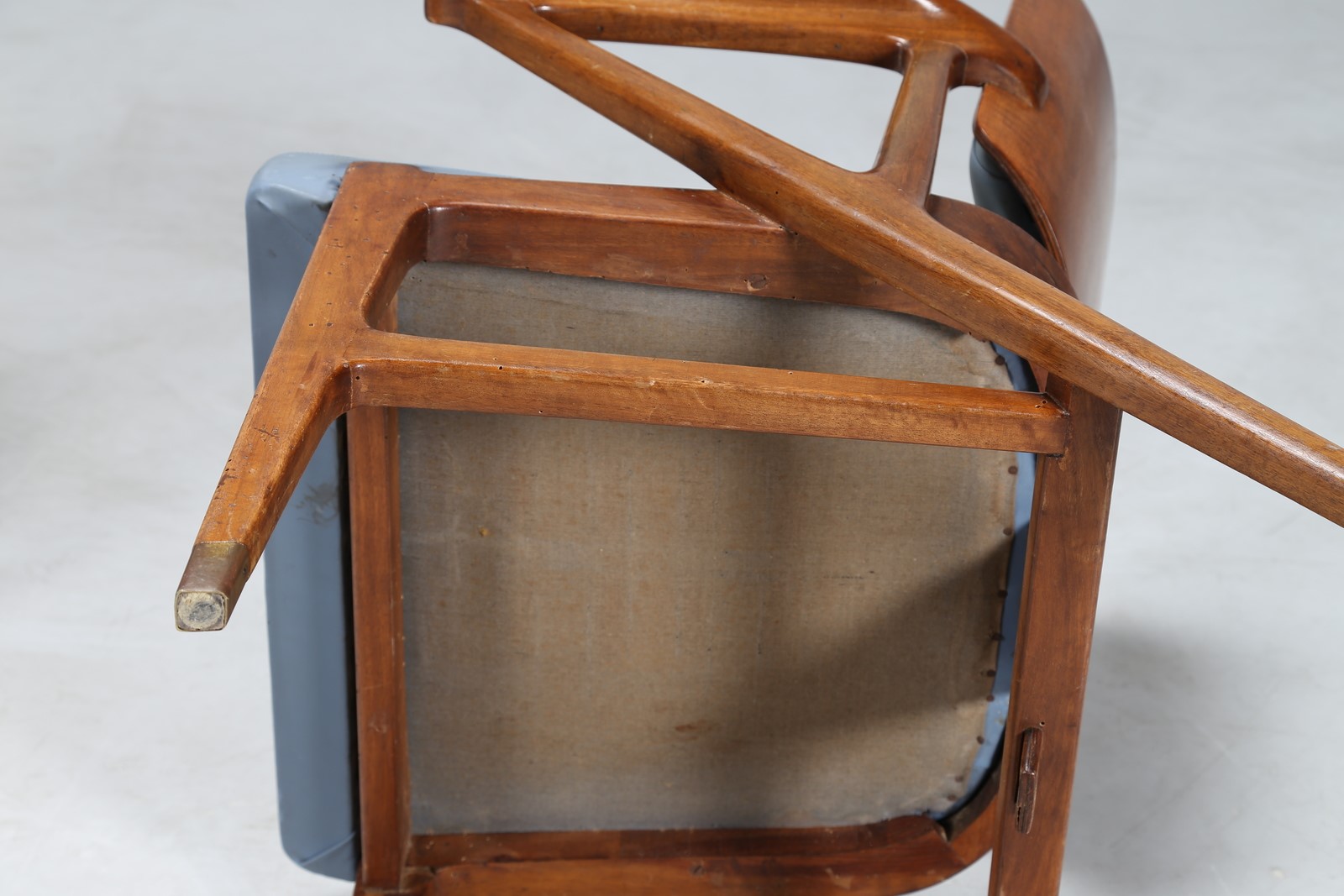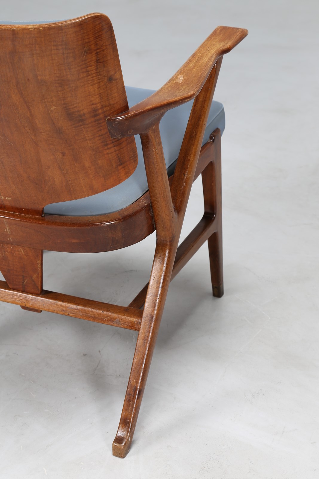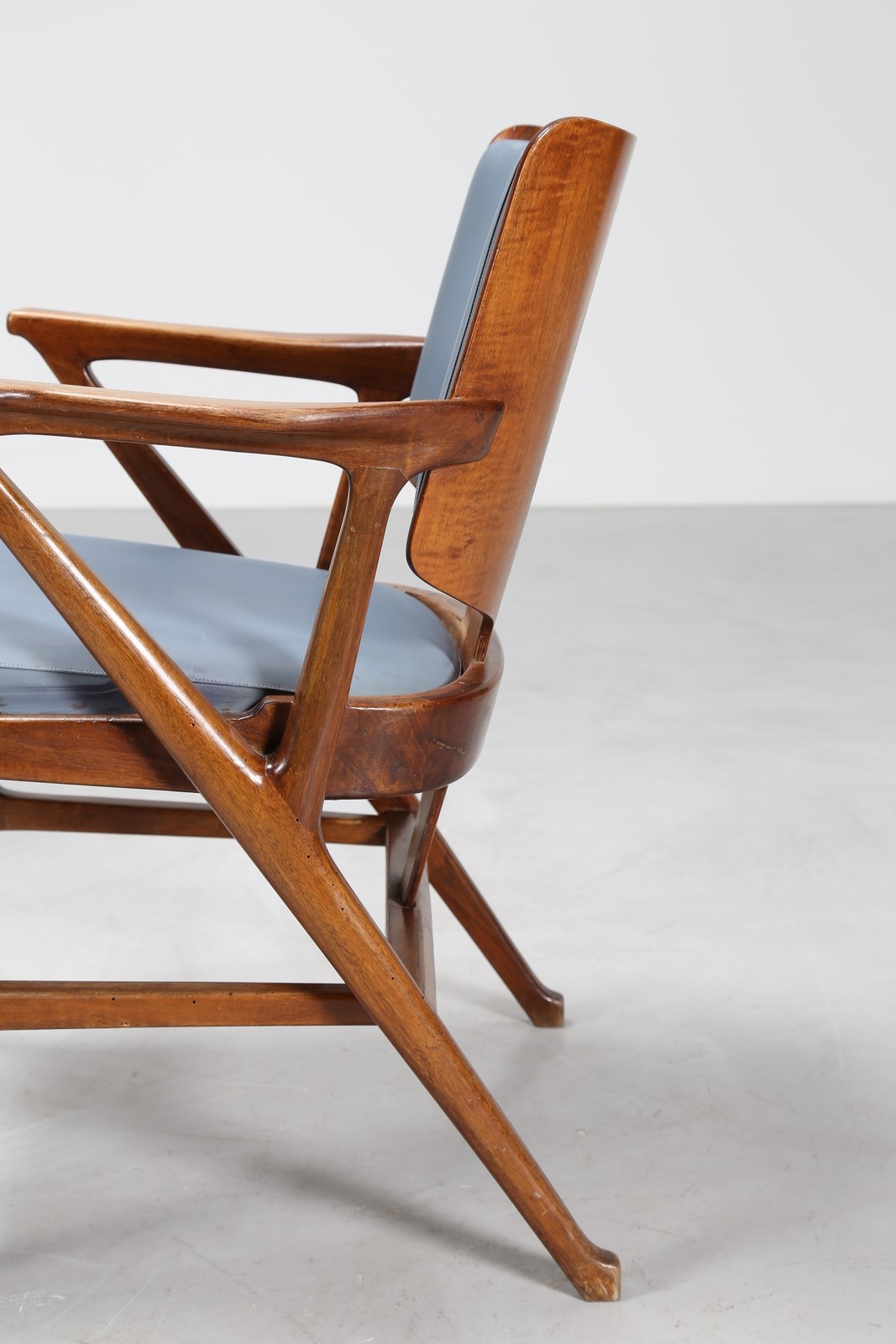 CIUTI ENRICO (n. 1910) Due poltroncine in noce e sky, per albergo termale del centro Italia, per Figli di Amedeo Cassina. Collaborazione tra il 1948/55. . -. Cm 59,00 x 75,00 x 52,00. Etichetta presente