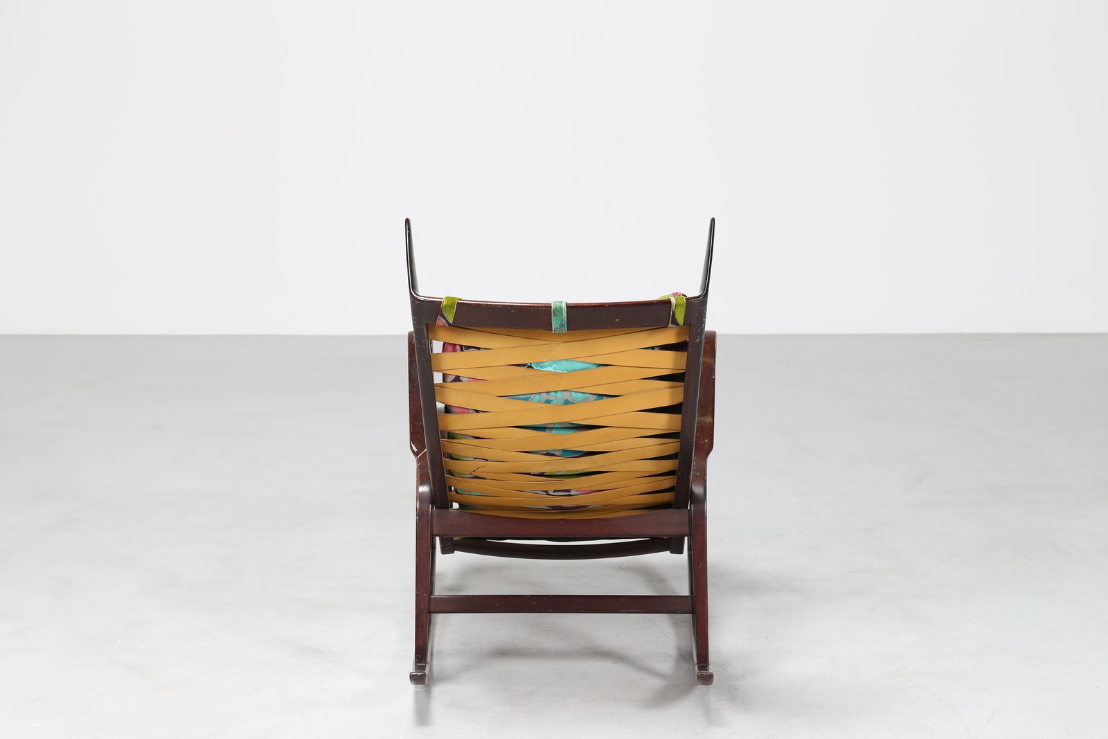 STUDIO CASSINA Sedia a dondolo in legno metallo, cinghie elasiche e cuscino...