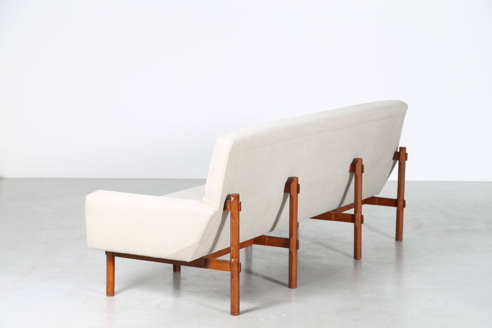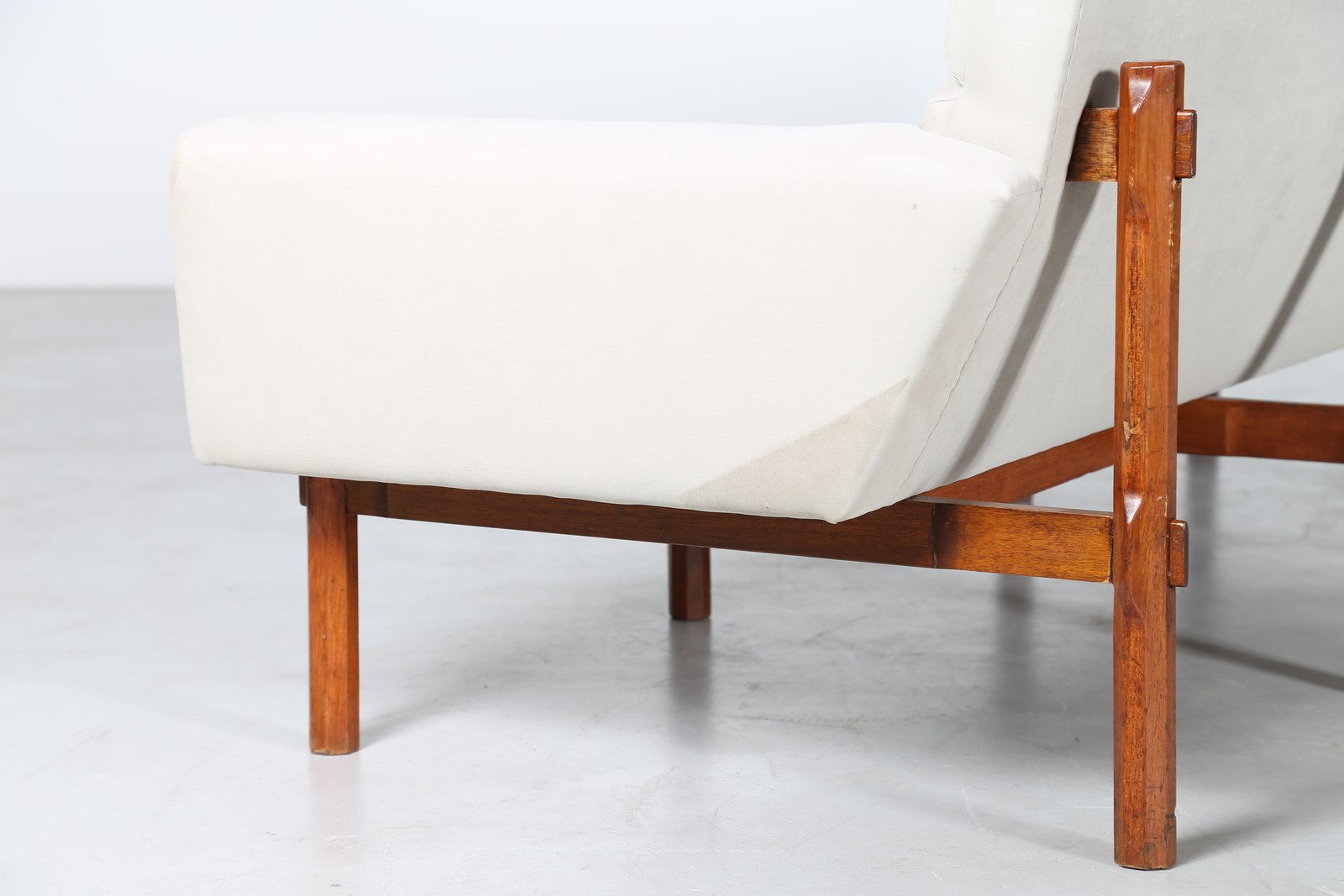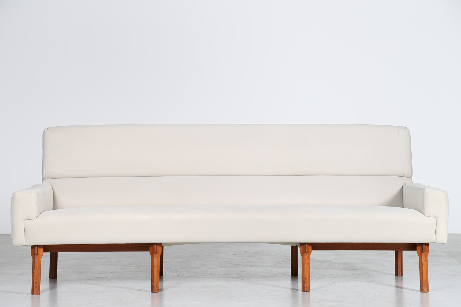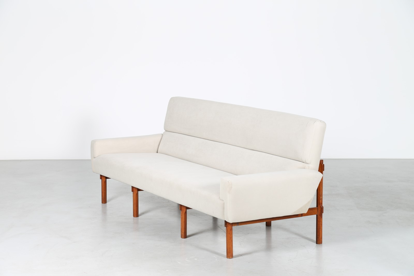PARISI ICO (1916 - 1996) Divano in legno di teak e tessuto, mod. 869, per Cassina, anni 60. Pubblicazioni; Made in Cassina Giampiero Bosoni ed. Skira Milano 2008 pag. 177; Domus n.385 dicembre 1961, pag. 46; Domus n. 399 febbraio 1963, pag. 105; Arredare n. 2 settembre 1963, p. 36. . -. Cm 215,00 x 84,00 x 81,00. Accompagnato da certificato di autenticità, Archivio Parisi.