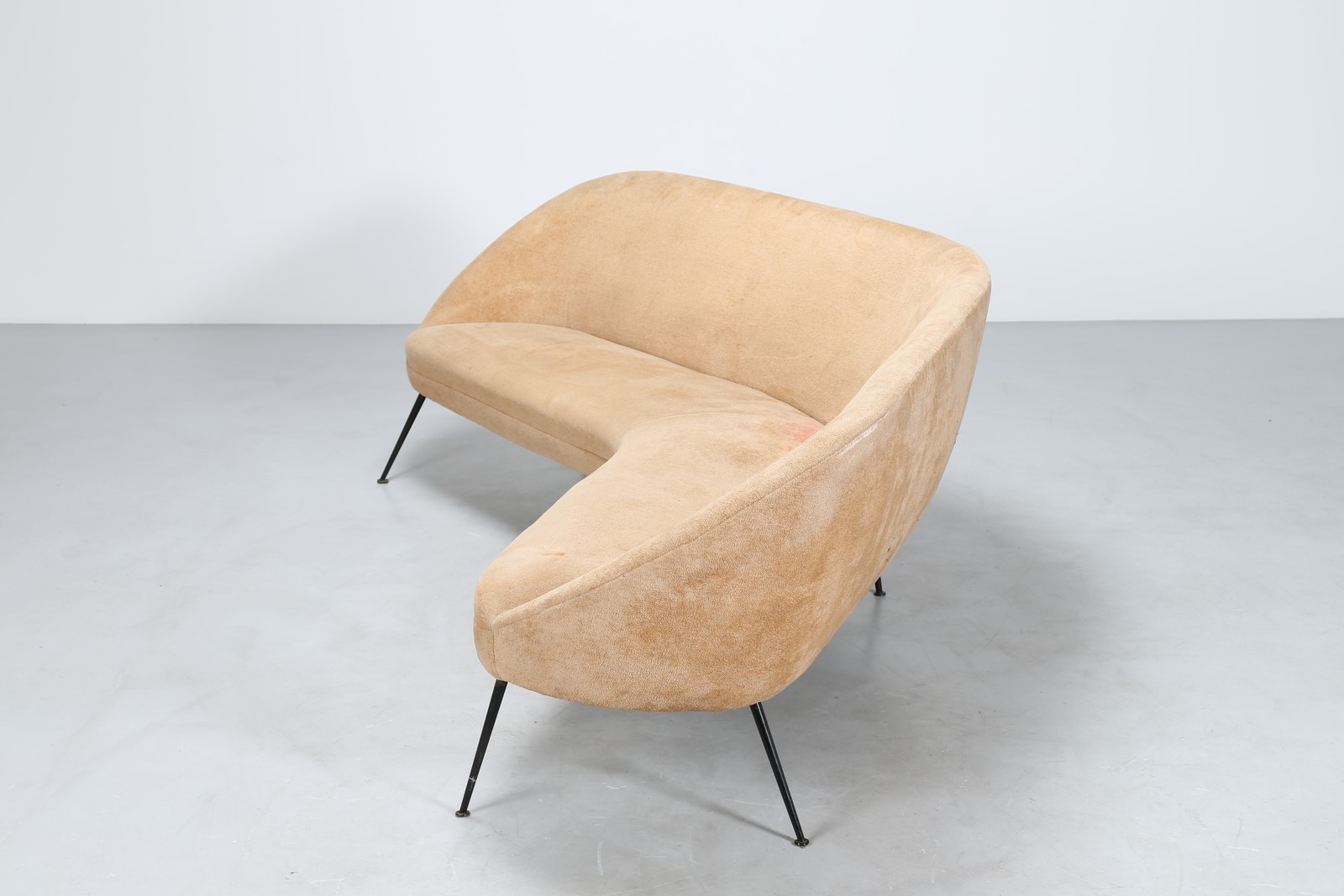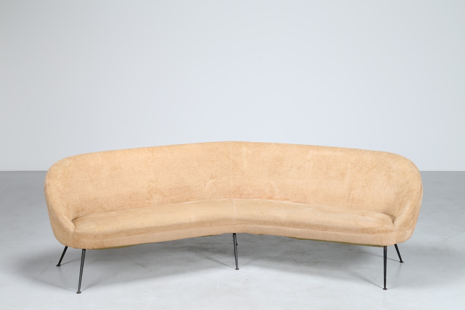 MUNARI FEDERICO Divano curvo rivestito in ciniglia originale con gambe in...