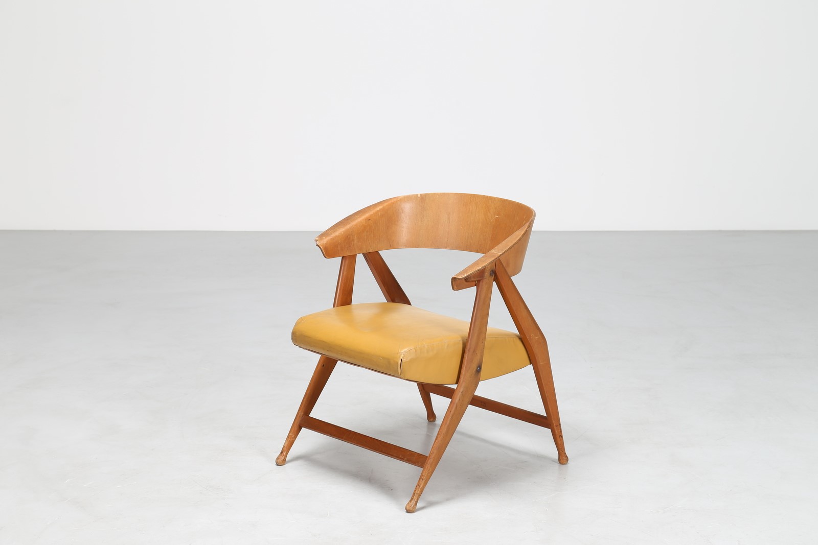 PONTI GIO' (1891 - 1979) Poltroncina pieghevole progettata per Cassina e prodotta da Singer e Fratelli Reguitti, anni 50. Pubblicazioni; Gio Ponti, l'Arte Si innamora dell'Industria , Ugo La Pietra, pag. 228 . -. Cm 61,00 x 70,00 x 59,00. Firmato con il marchio del produttore FR Made in Italy. Expertise a cura di Salvatore Licitra - Archivio Giò Ponti, Milano.
