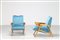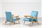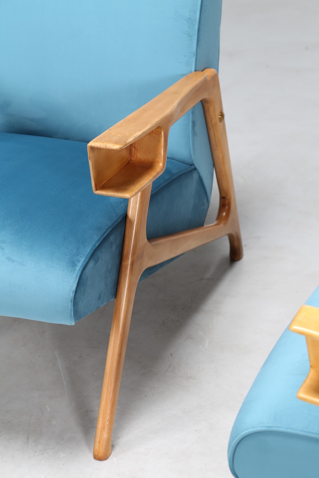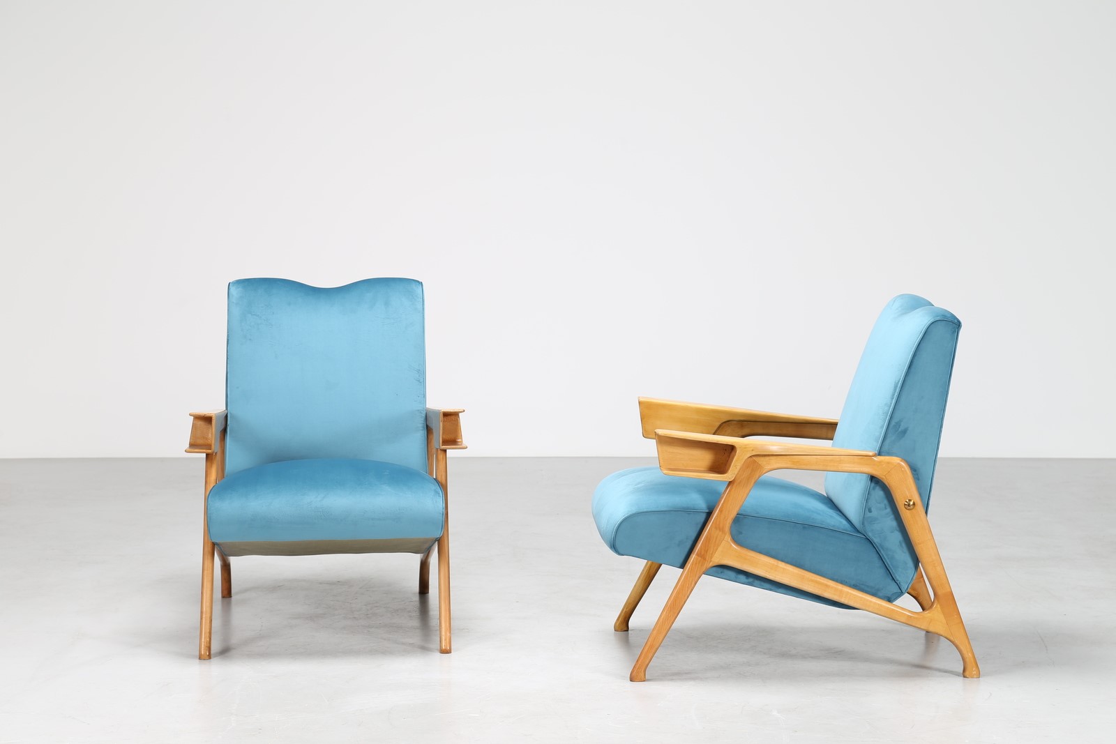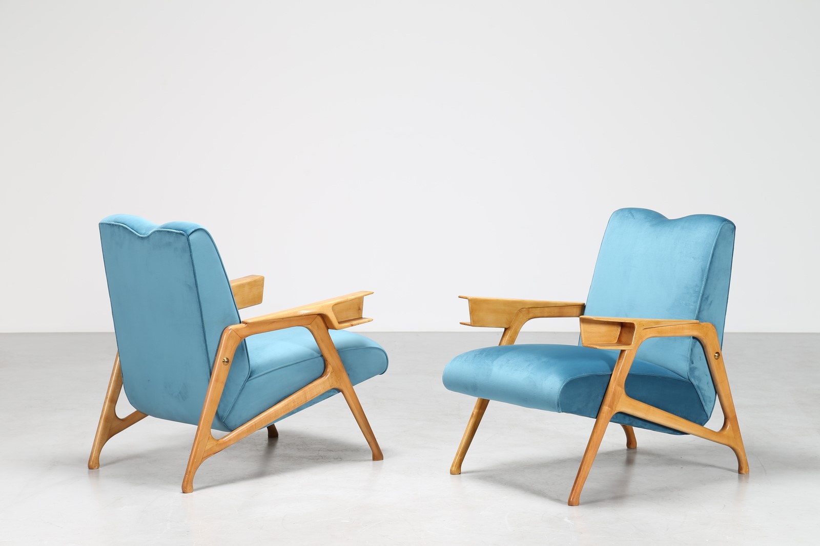ROMANO AUGUSTO Coppia di poltrone in acero e tessuto, variante del modello...