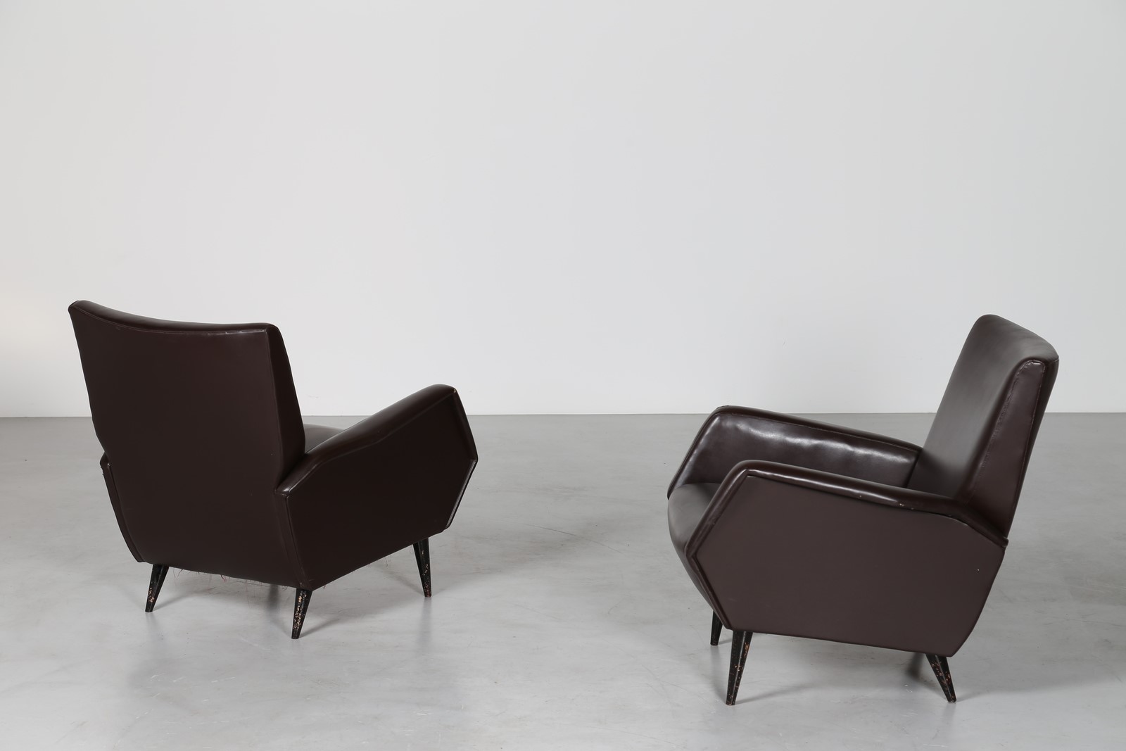 PONTI GIO' (1891 - 1979) Coppia di poltrone con struttura in legno,...