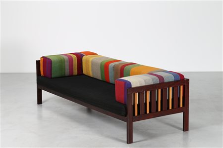 SOTTSASS ETTORE (1917 - 2007) Divano in mogano e faggio, rivestimento in...