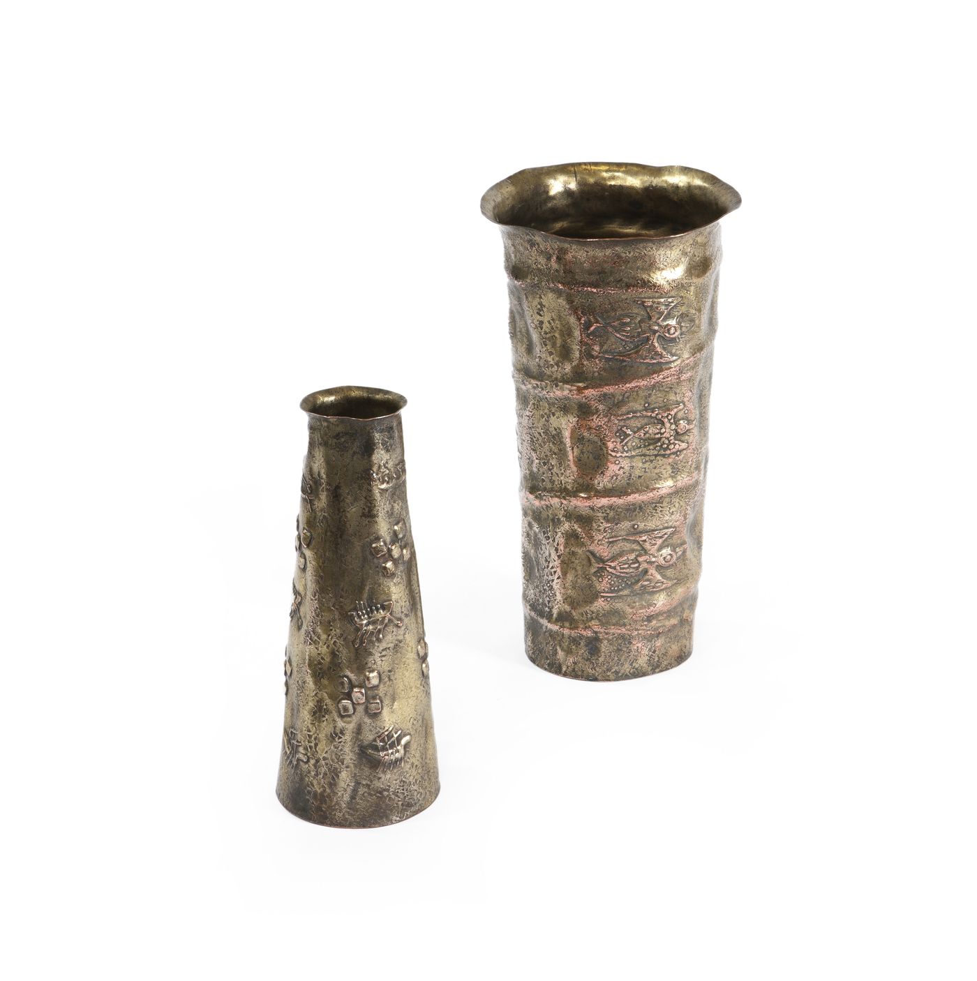 BRAGALINI ANGELO Due vasi in rame argentato lavorati a sbalzo. Incusso alla...