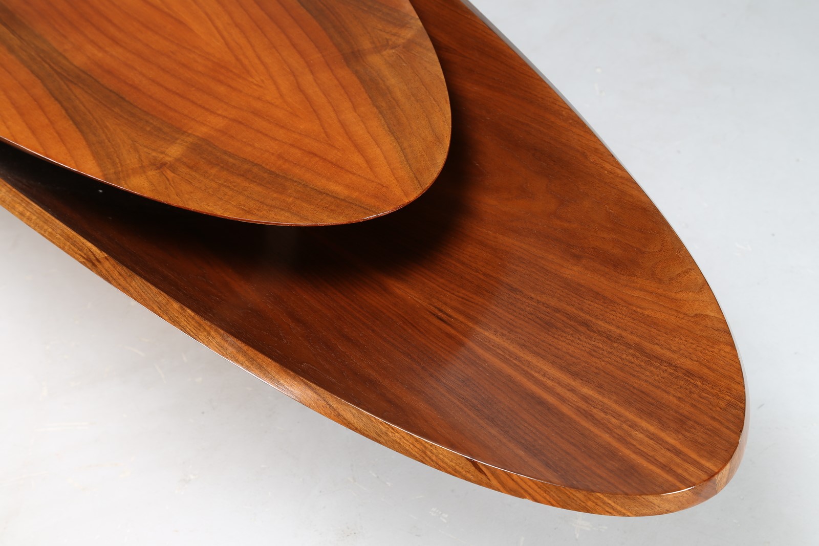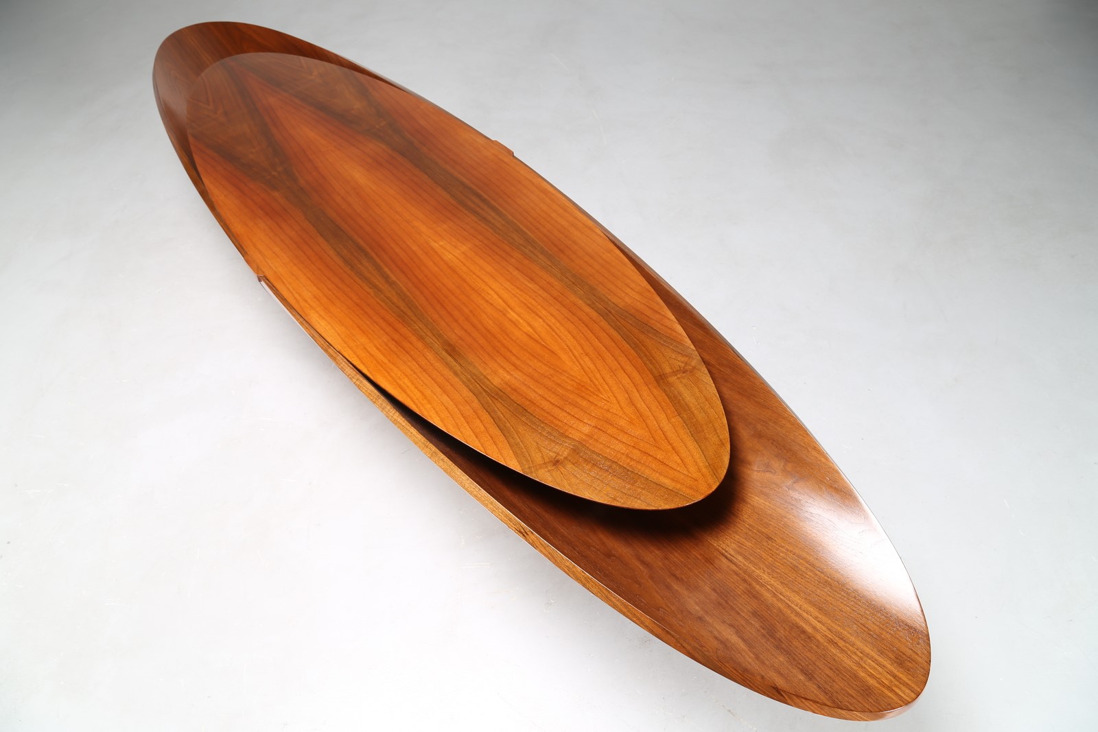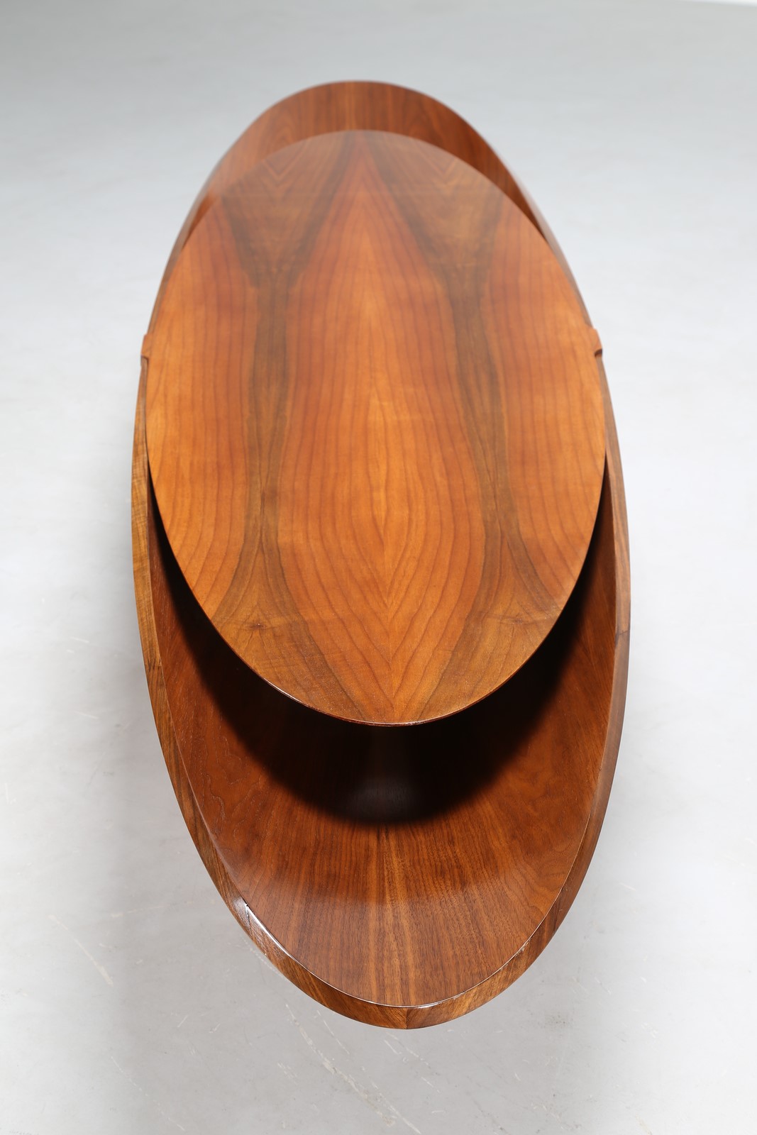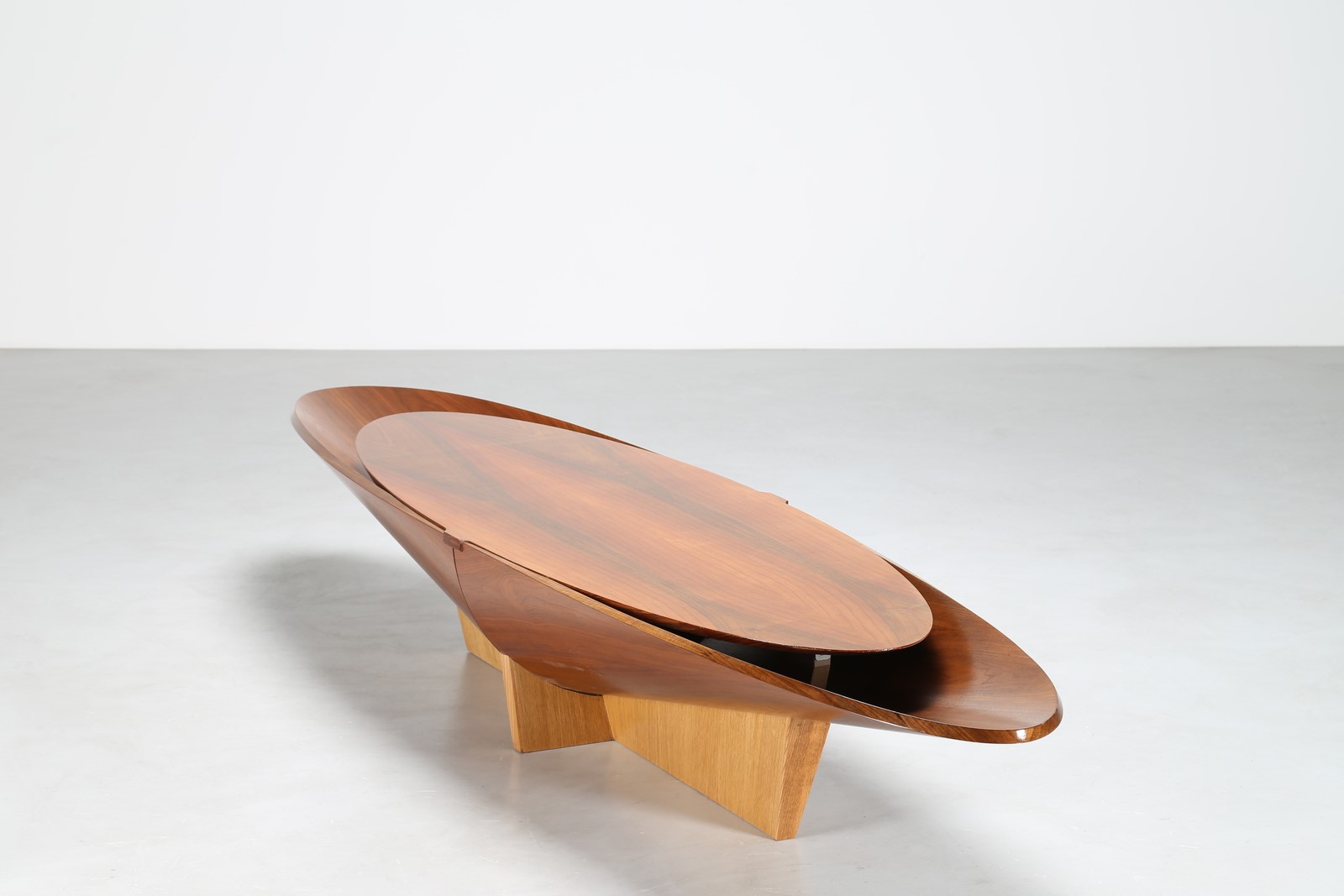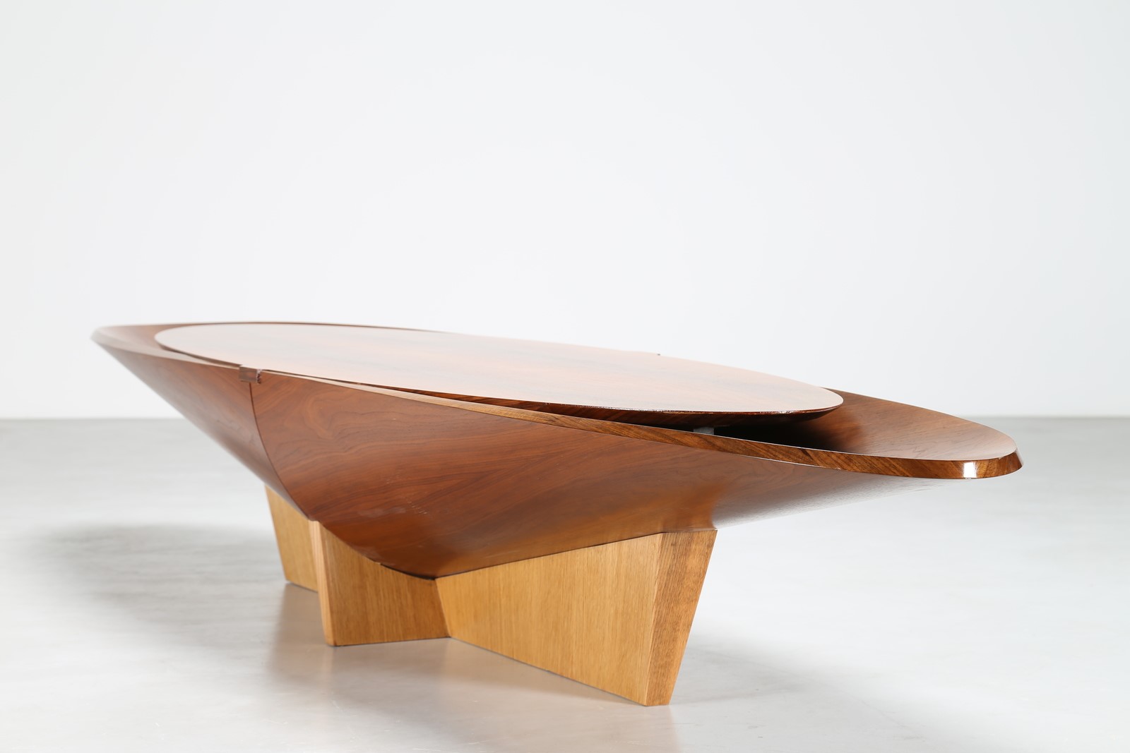 Lot 227 | LE OPERE E I GIORNI Grande tavolo basso in noce e rovere, piano sospeso su...
