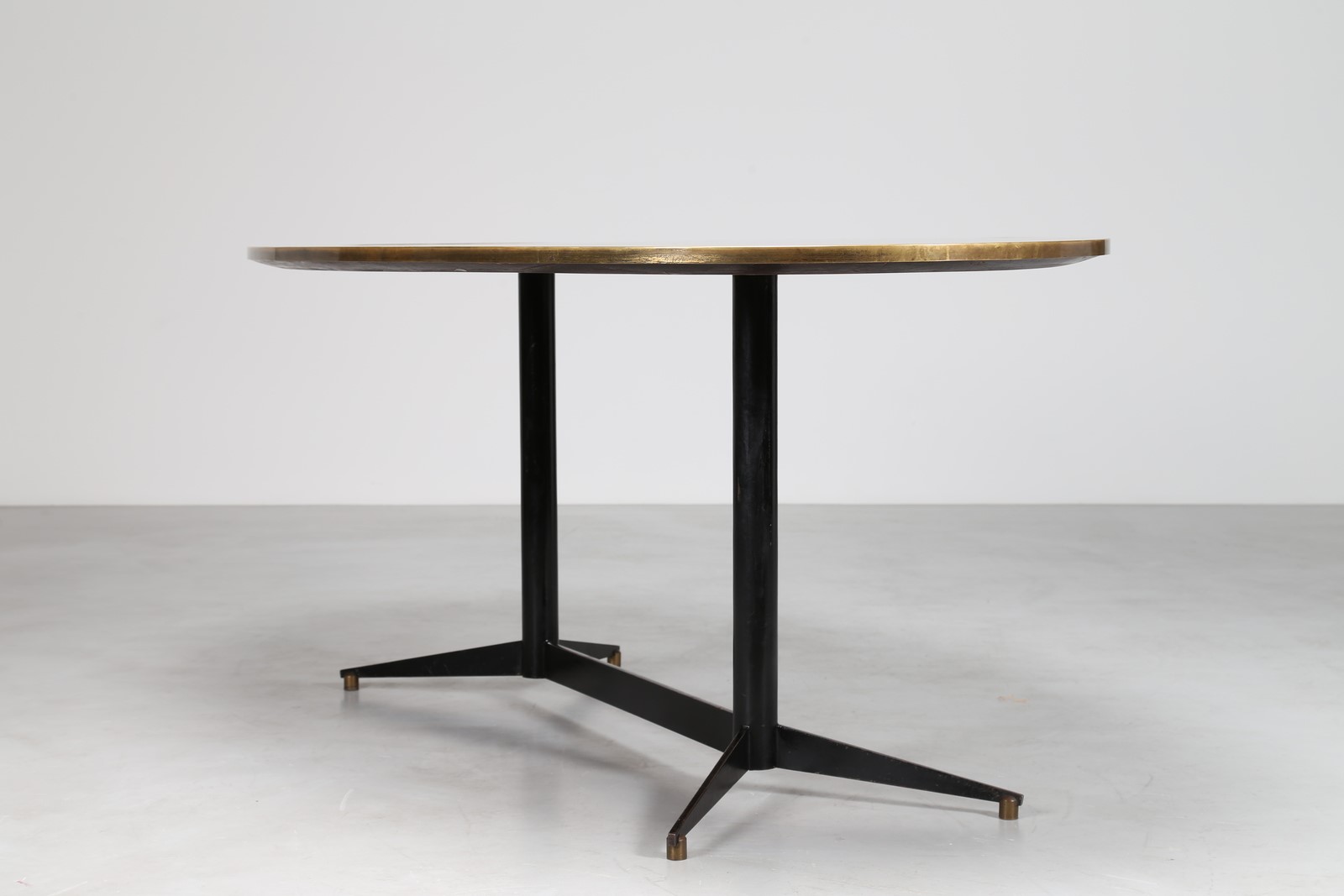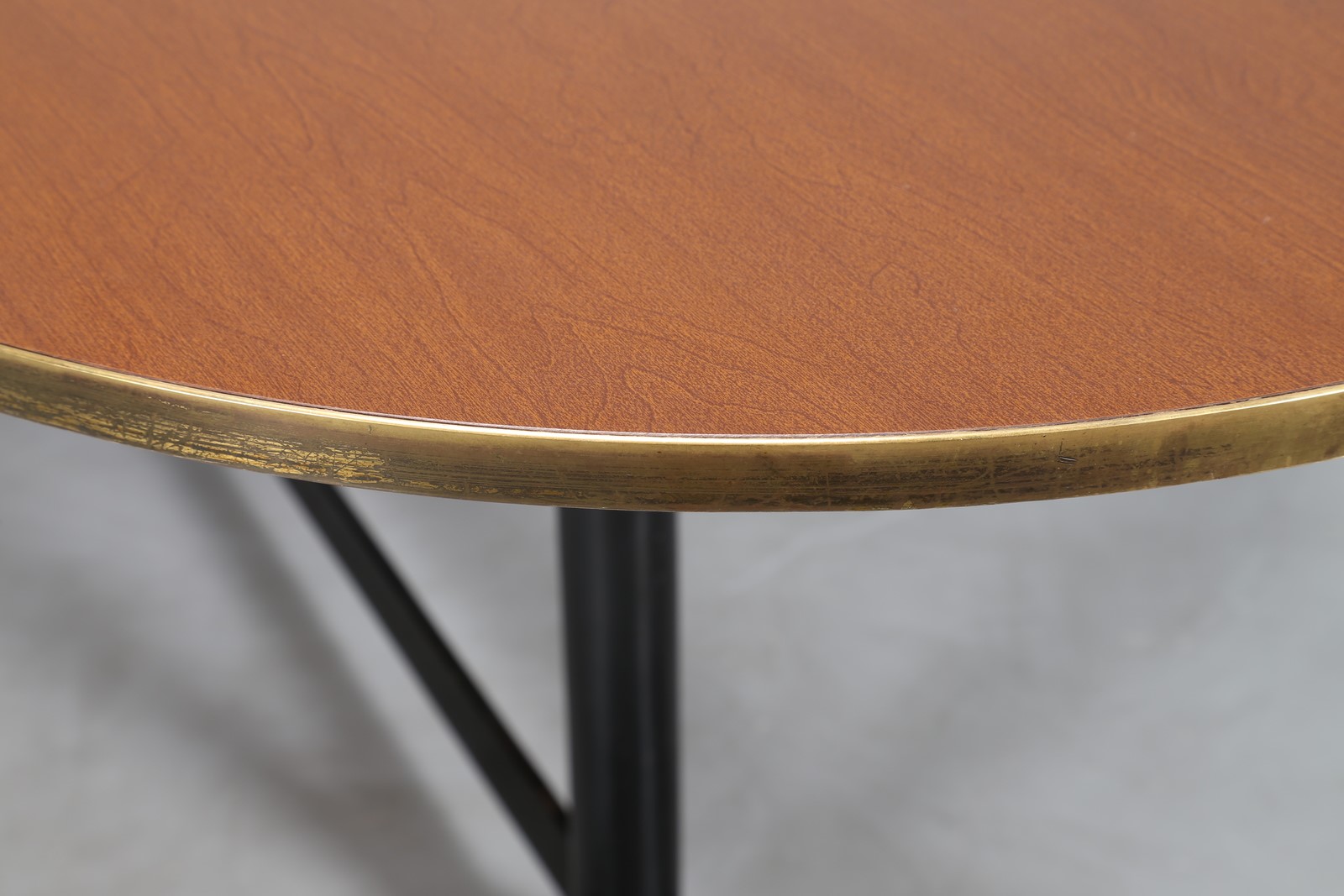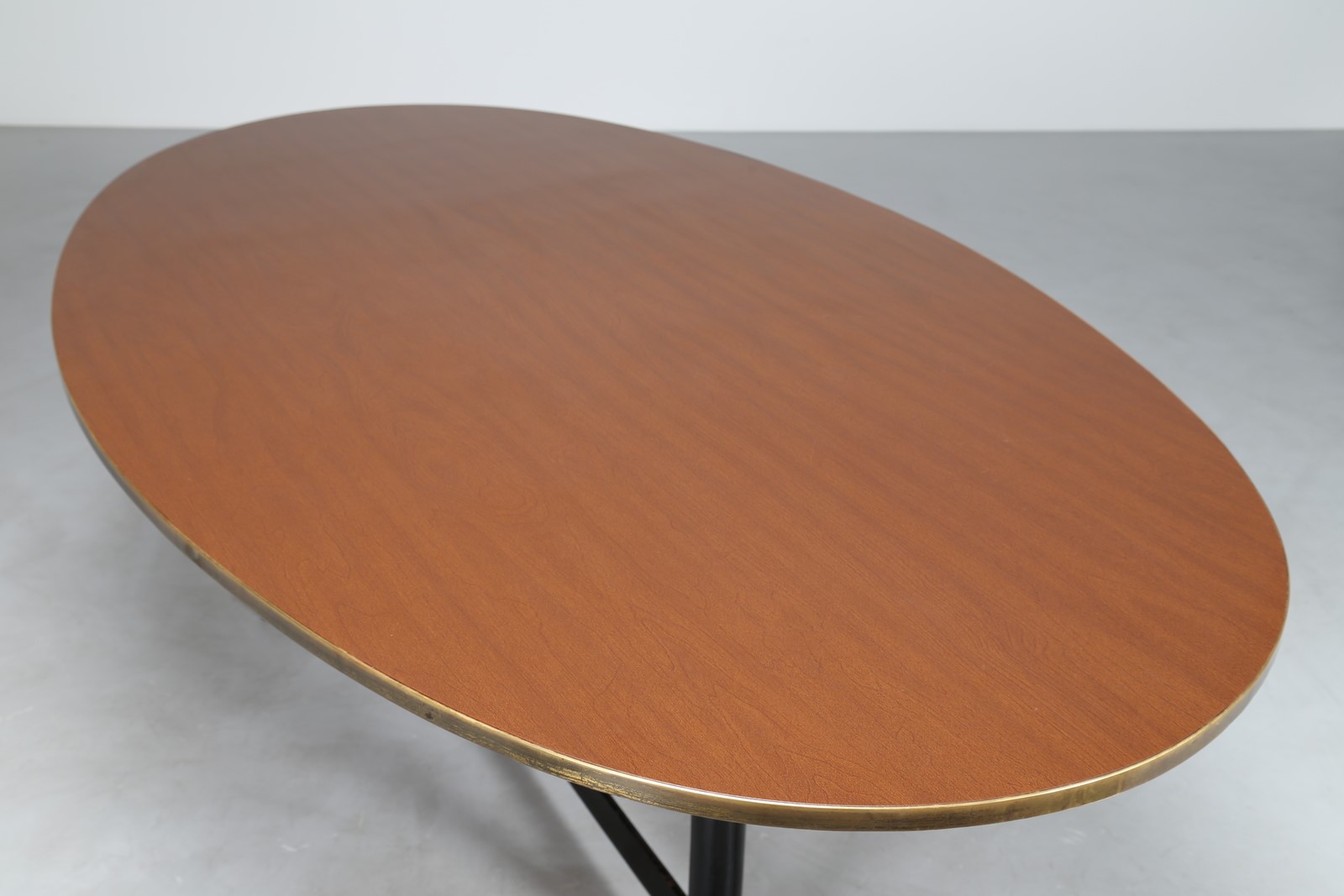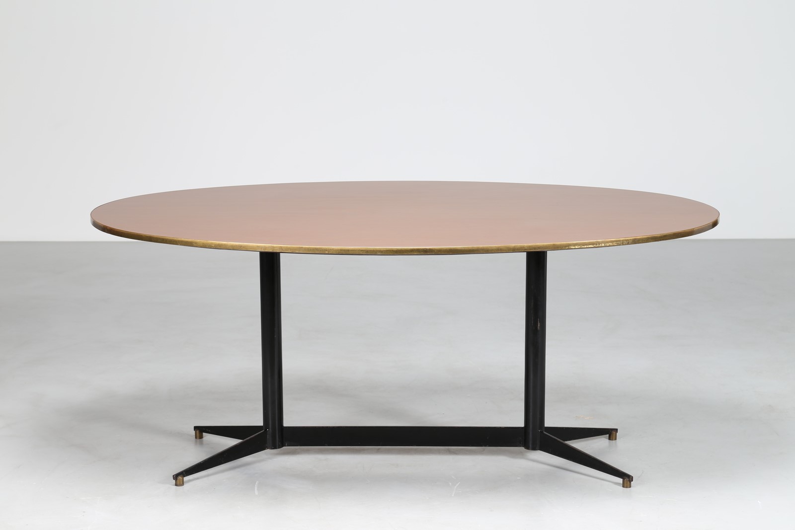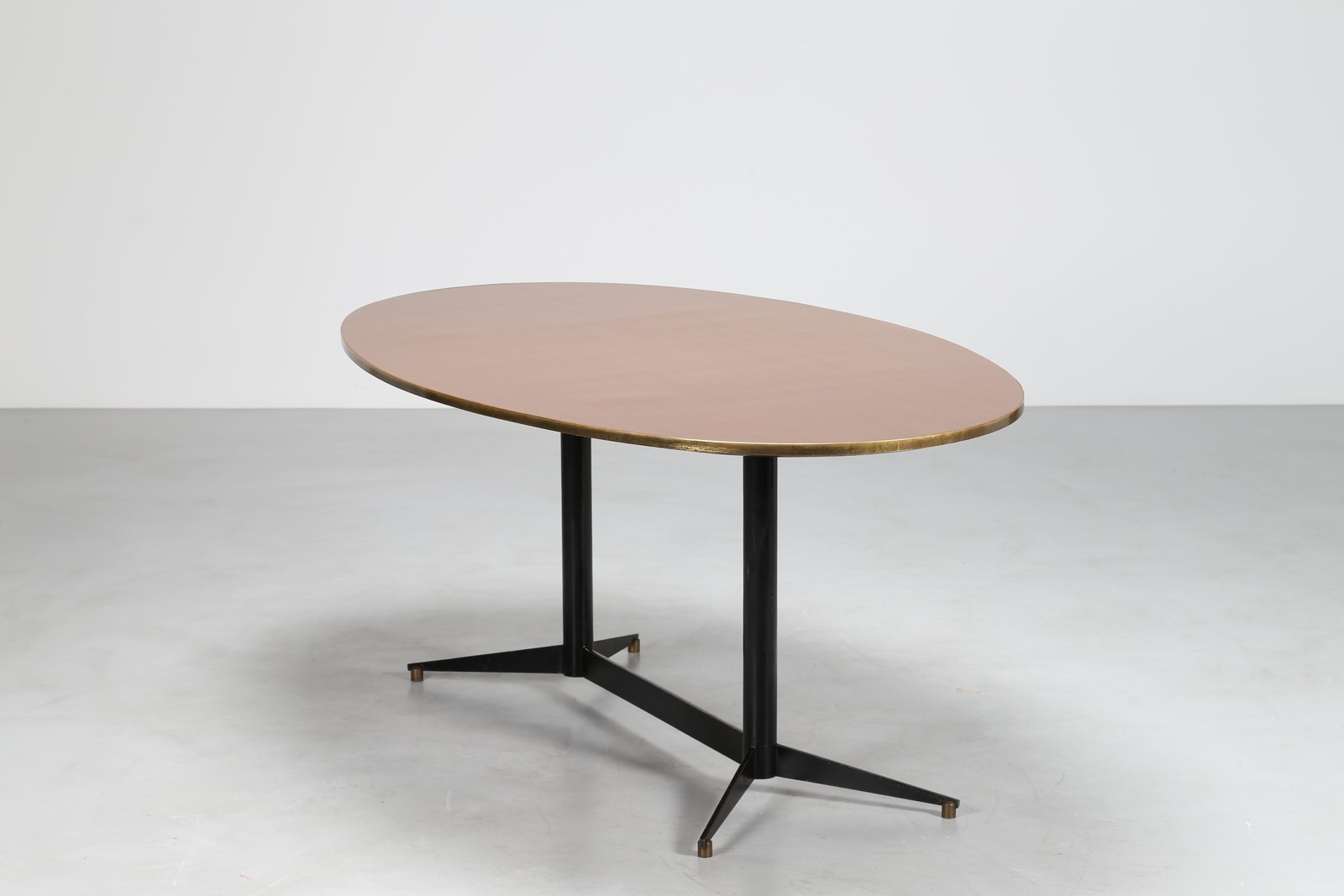 PONTI GIO' (1891 - 1979) Tavolo ovale in metallo laccato e ottone con piano in formica e bordo di ottone, per RIMA, anni 50. . -. Cm 180,00 x 75,00 x 105,00. Expertise a cura di Salvatore Licitra - Archivio Giò Ponti, Milano. ???