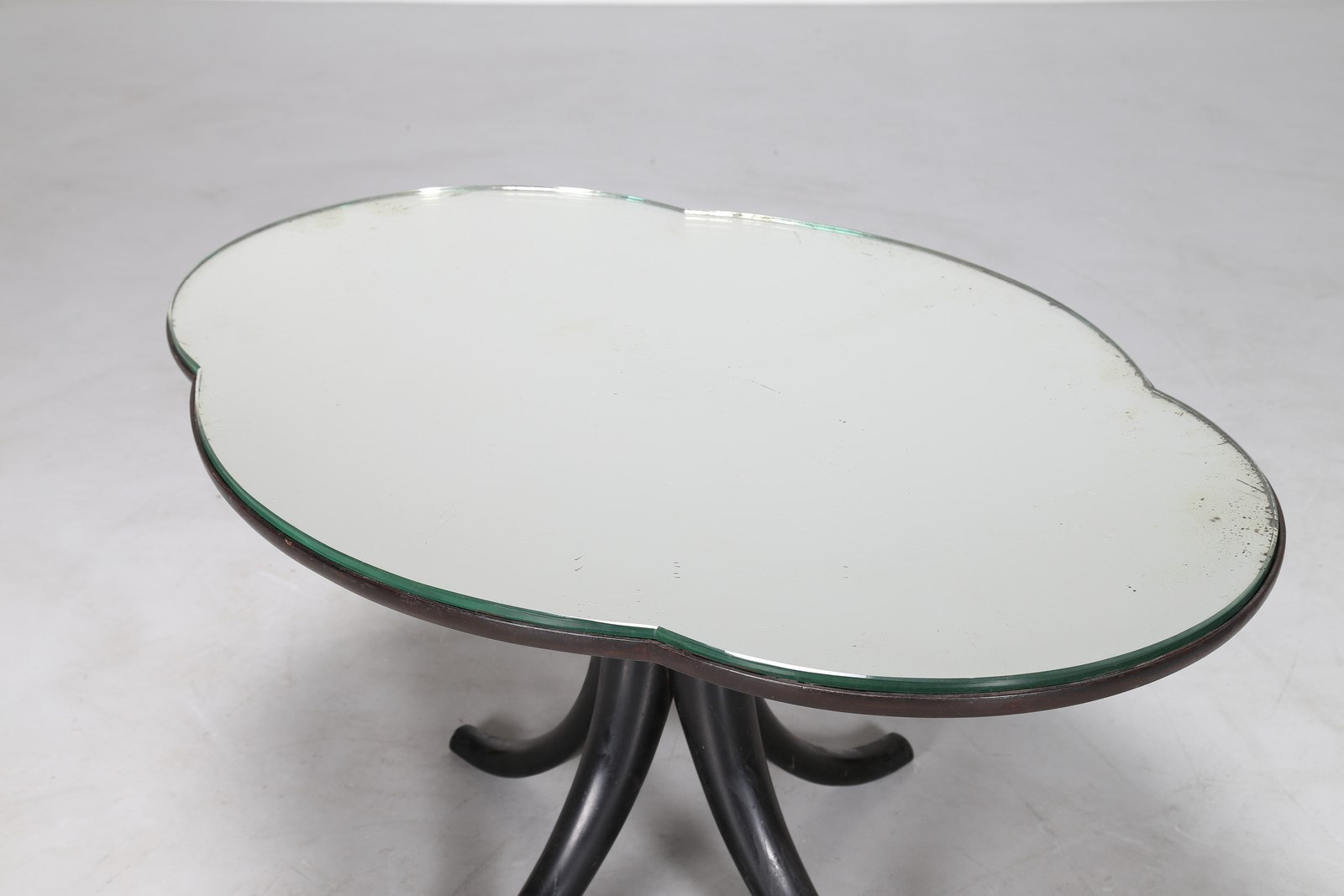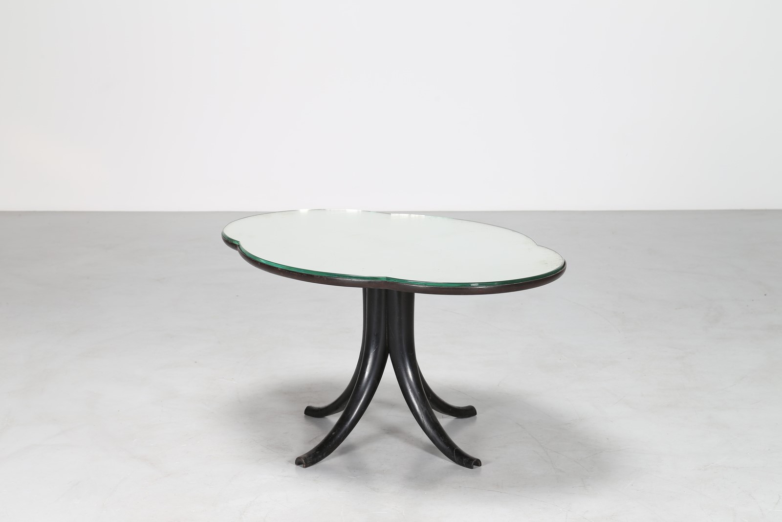 CHIESA PIETRO (1892 - 1948) Tavolino in legno laccato nero con piano in vetro specchiato, per Fontana Arte, anni 50. Pubblicazioni; R. Aloi, L’arredamento Moderno, Hoepli, 1952. figura 353 . -. Cm 110,00 x 57,00 x 80,00.