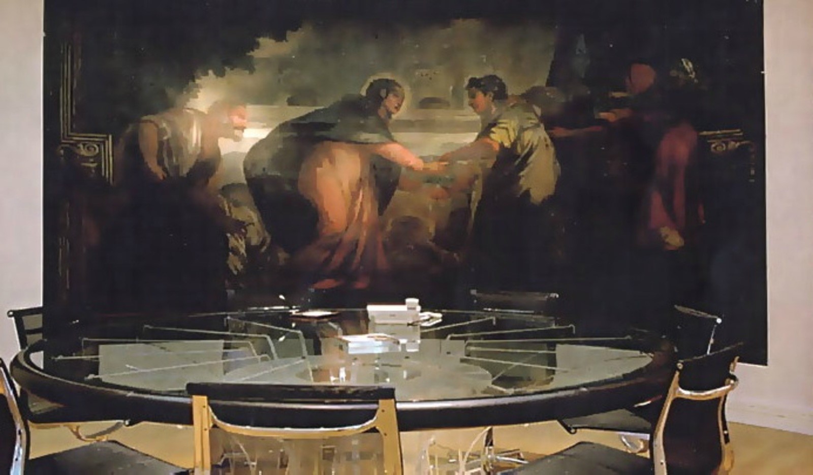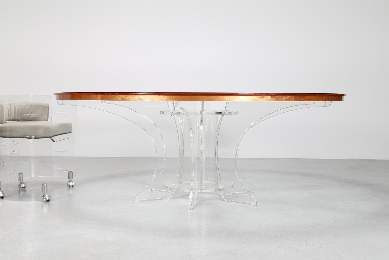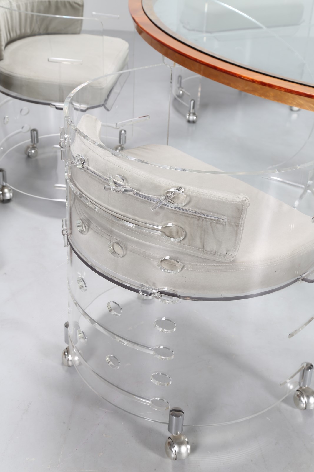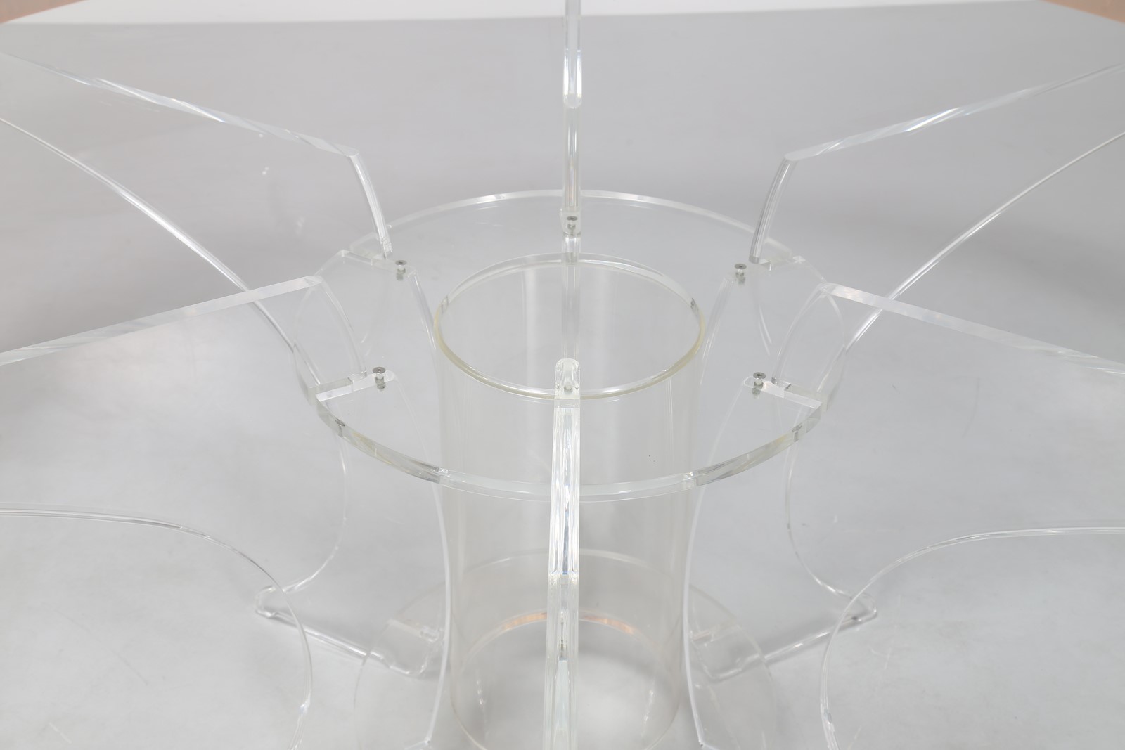 DI PILLA LUCIANO Tavolo rotondo in plexiglass e vetro, con otto poltroncine...