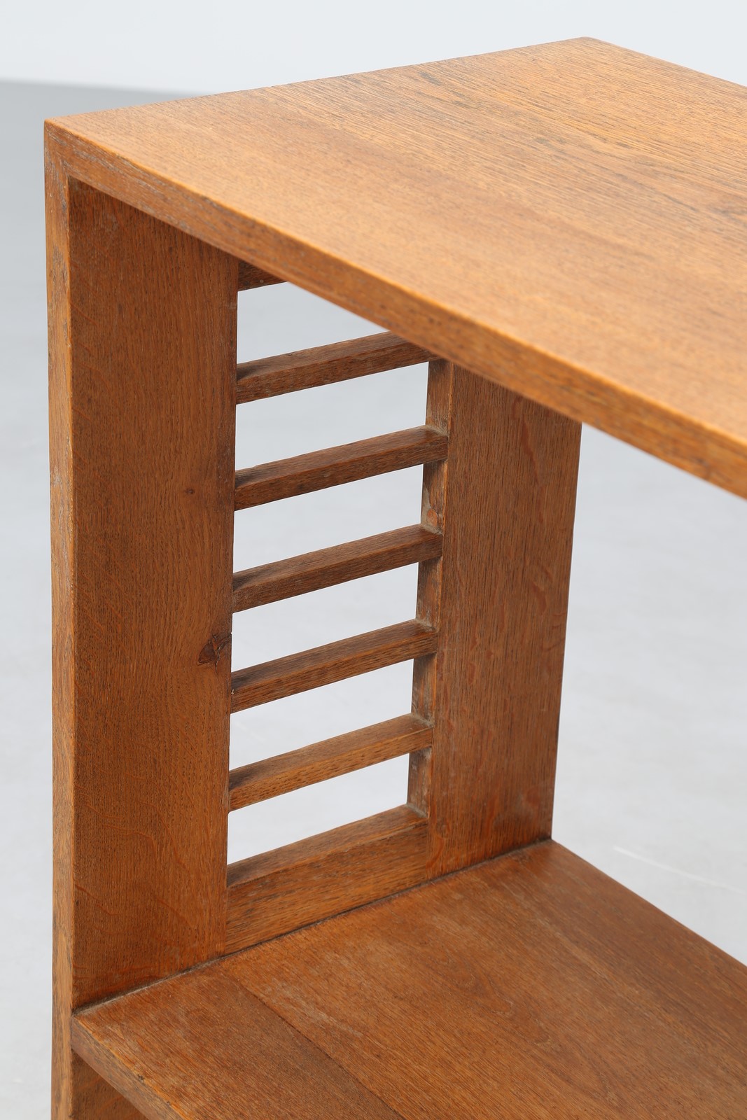 MANIFATTURA ITALIANA Consolle in rovere, anni 50. . -. Cm 86,50 x 85,50 x 40,00.