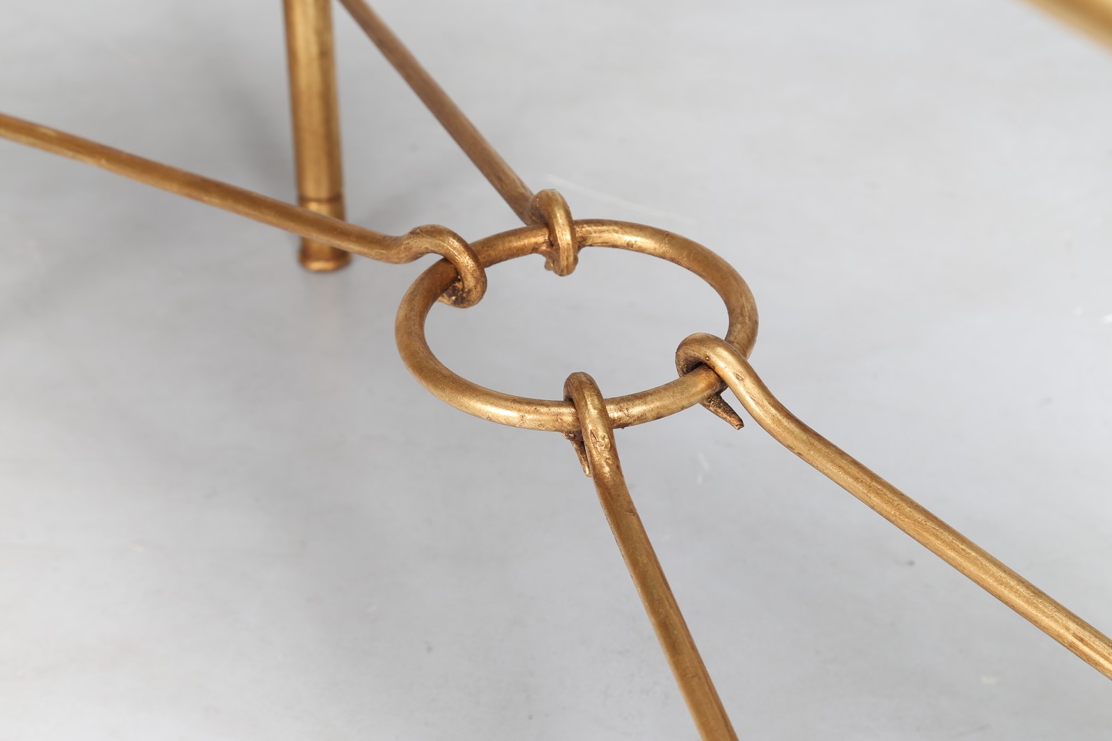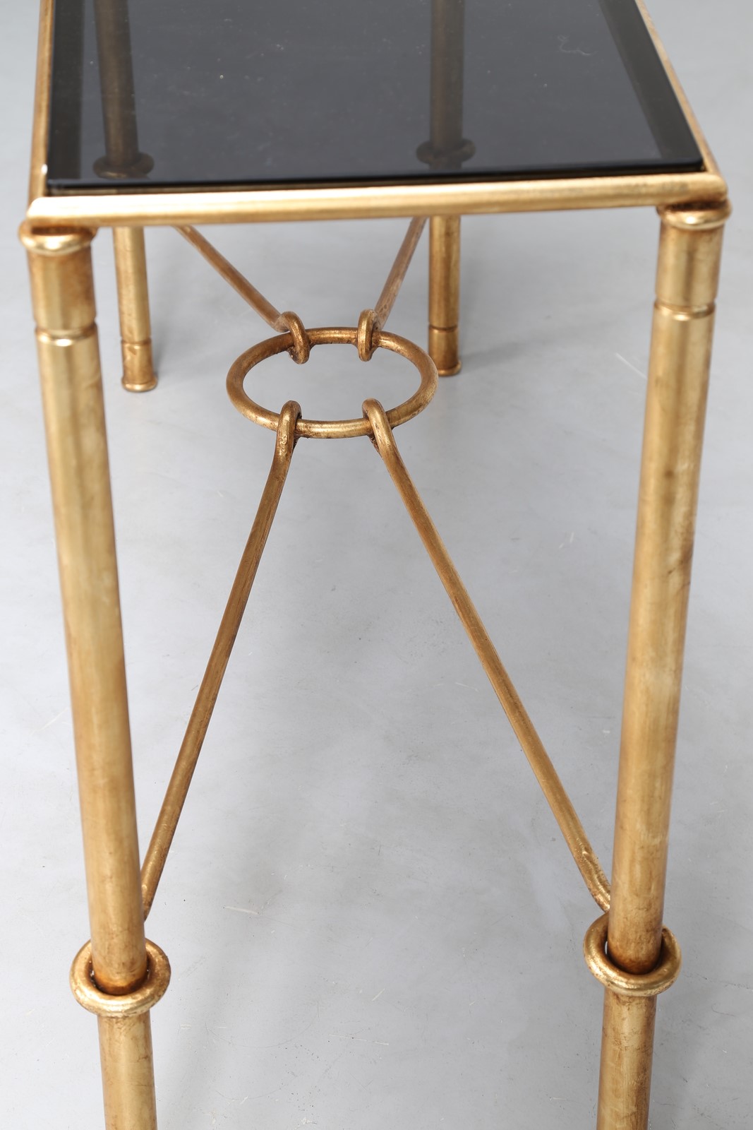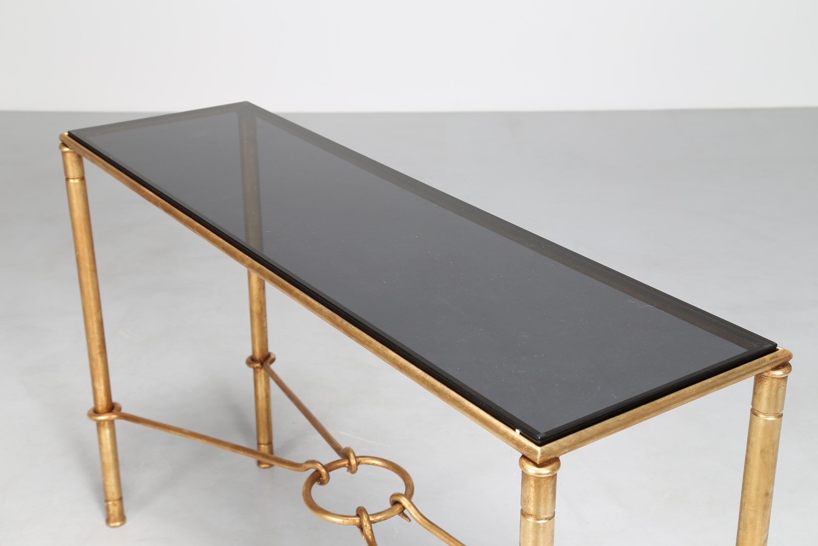BANCI GIOVANNI Consolle in ferro dorato con piano in vetro, anni 70. -. Cm...