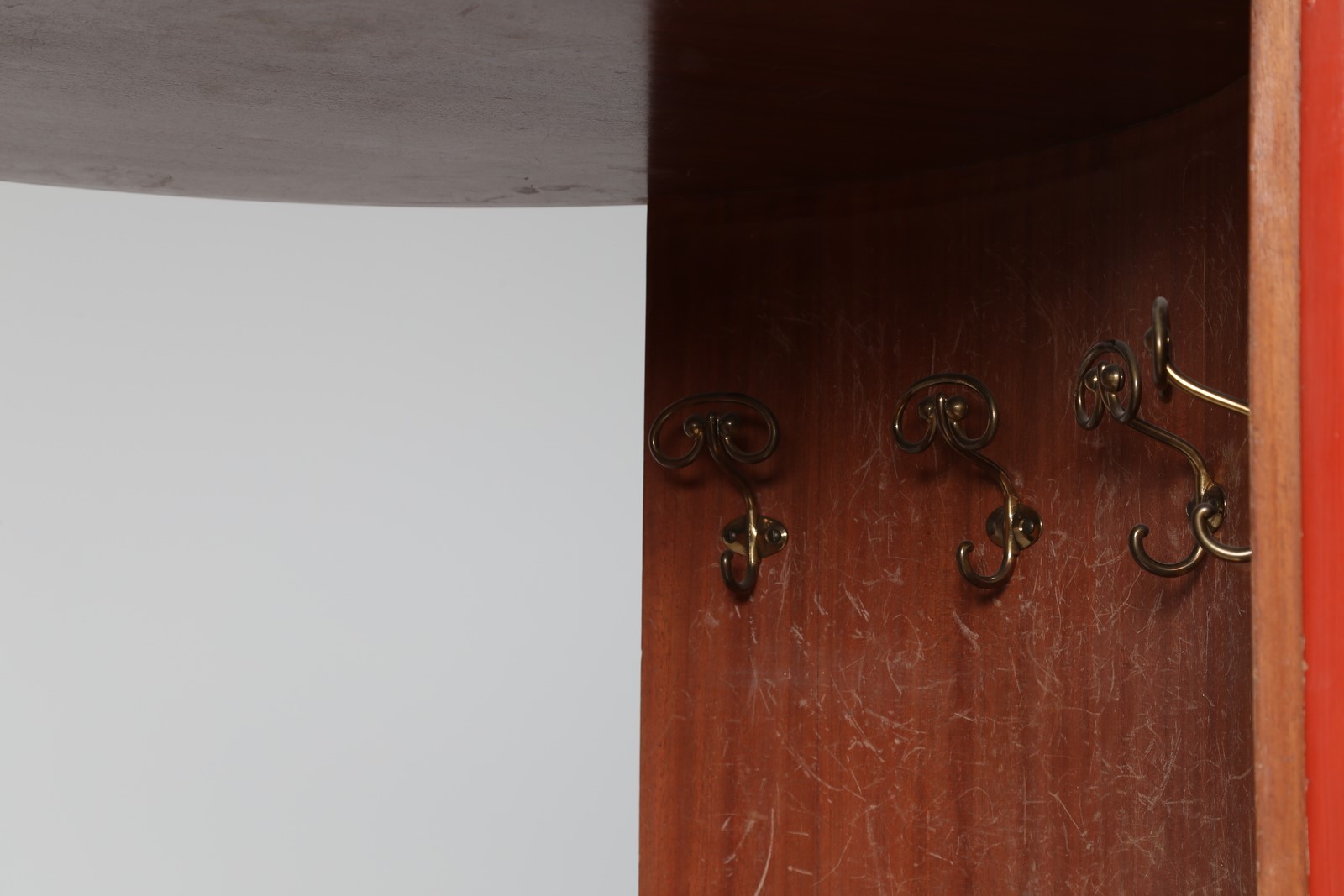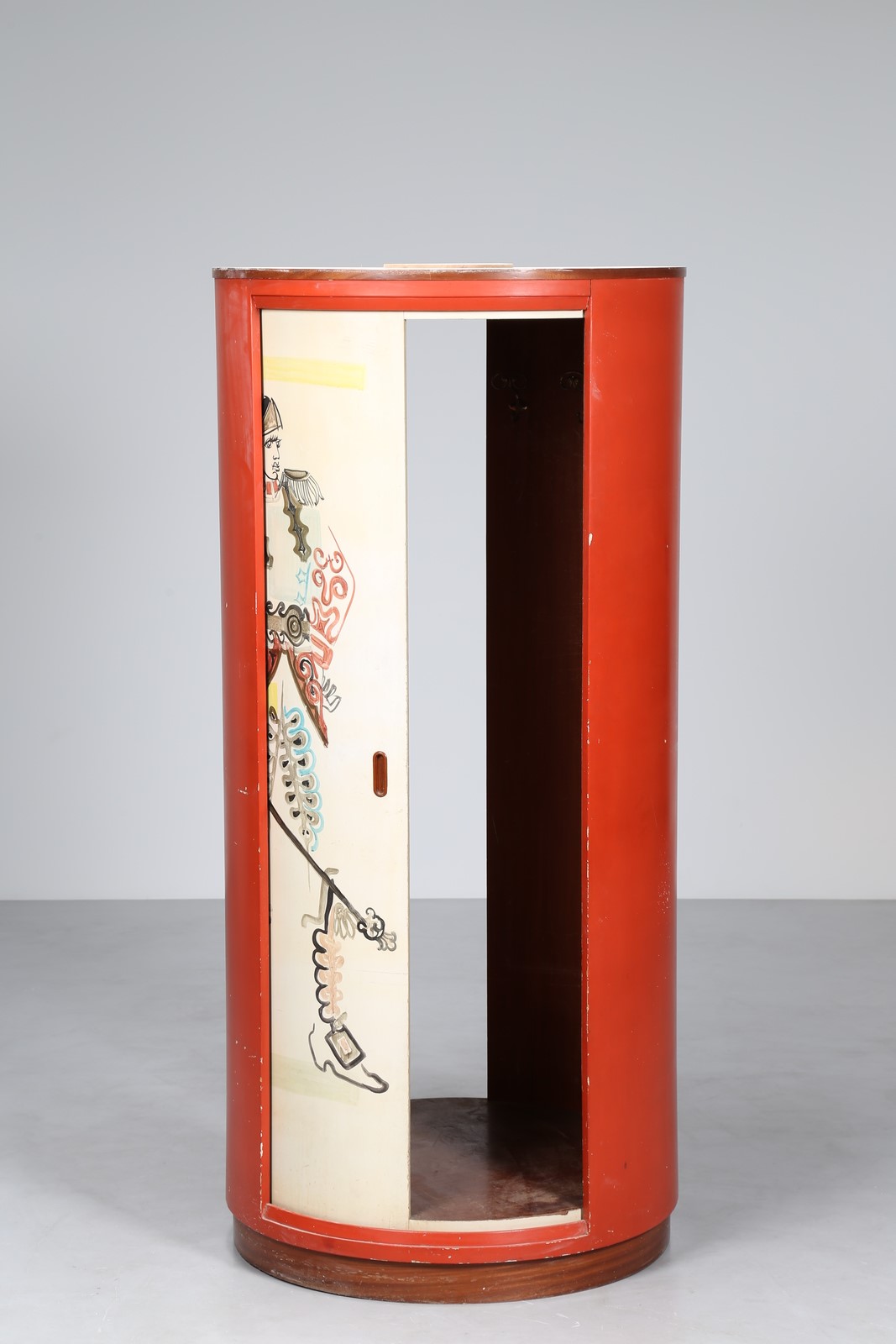 MANIFATTURA ITALIANA Cabina appendiabiti cilindrica in legno laccato e dipinto con dettagli in ottone, anni 40. -. Cm 90,00 x 190,00 x 90,00.