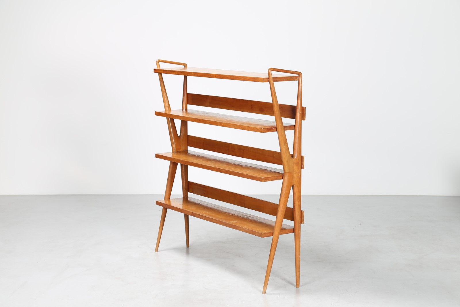 GIORDANI PIERLUIGI Etagere in ciliegio, anni 50. -. Cm 149,50 x 153,00 x 33,00.