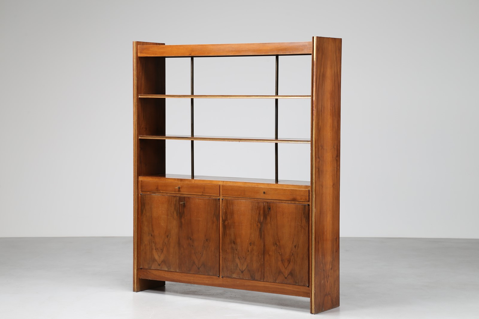 SCREMIN LUIGI (1896 - 1983) Libreria in noce nazionale, con dettagli in ottone, produzione Fratelli Scremin Belluno, anni 50. Collezione privata, dimora in Belluno interamente arredata da Luigi Scremin. . -. Cm 155,00 x 185,00 x 35,00.