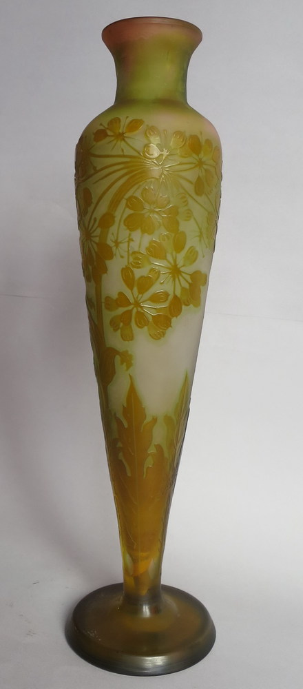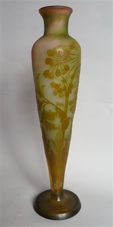 GALLE' - VASO, ca 1910 Grande vaso di forma affusolata, con piede circolare,...