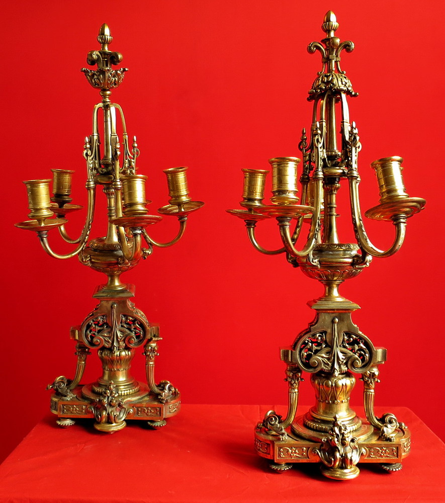 Lot 49 | COPPIA DI CANDELABRI IN BRONZO DORATO XX SEC. a cinque fiamme decorati h: cm...