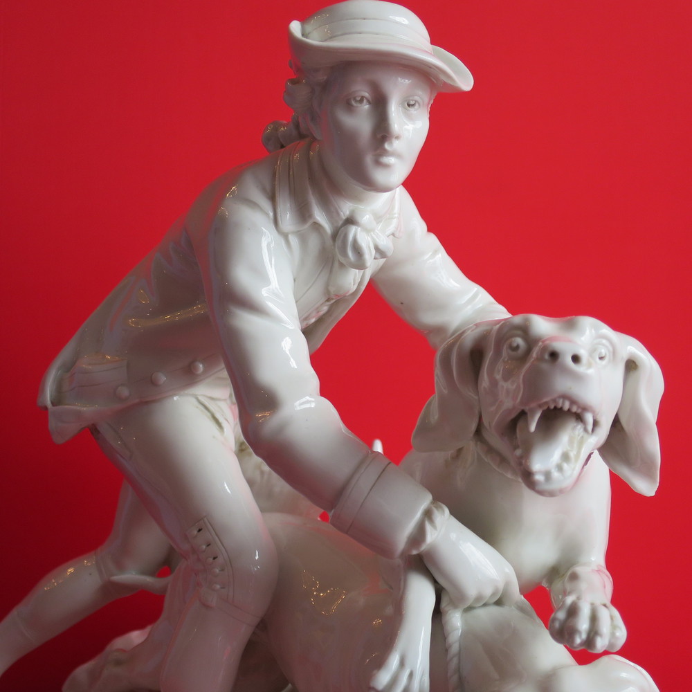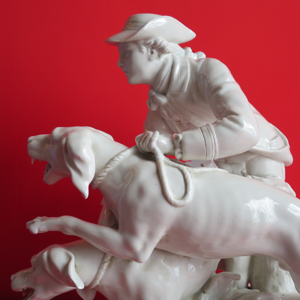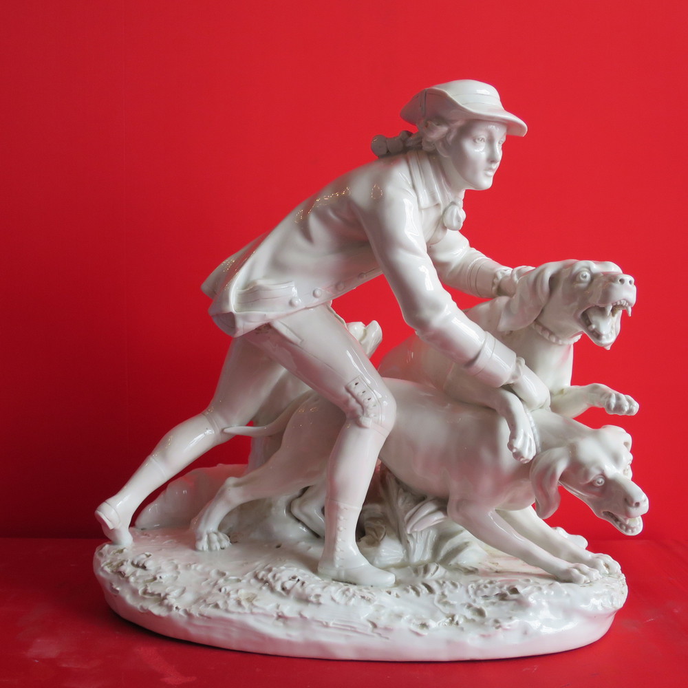 Da J.B. OUDRY (1688-1755) - GRANDE GRUPPO IN PORCELLANA BIANCA raffigurante cacciatore con cani, incisa sulla base 'd'apres Oudry' 33 cm Manifattura italiana da un modello di Sèvres A SEVRES-STYLE WHITE PORCELAIN HUNTING GROUP. AFTER J.B. OUDRY