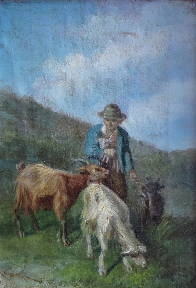 SCUOLA FRANCESE DEL XIX SECOLO - 'PASTORE' (SHEPERD) Olio su tela 27,4 x 19 cm, Firmato in basso a sinistra Oil on canvas 10 25/32 x 7 31/64 in. Signed lower left
