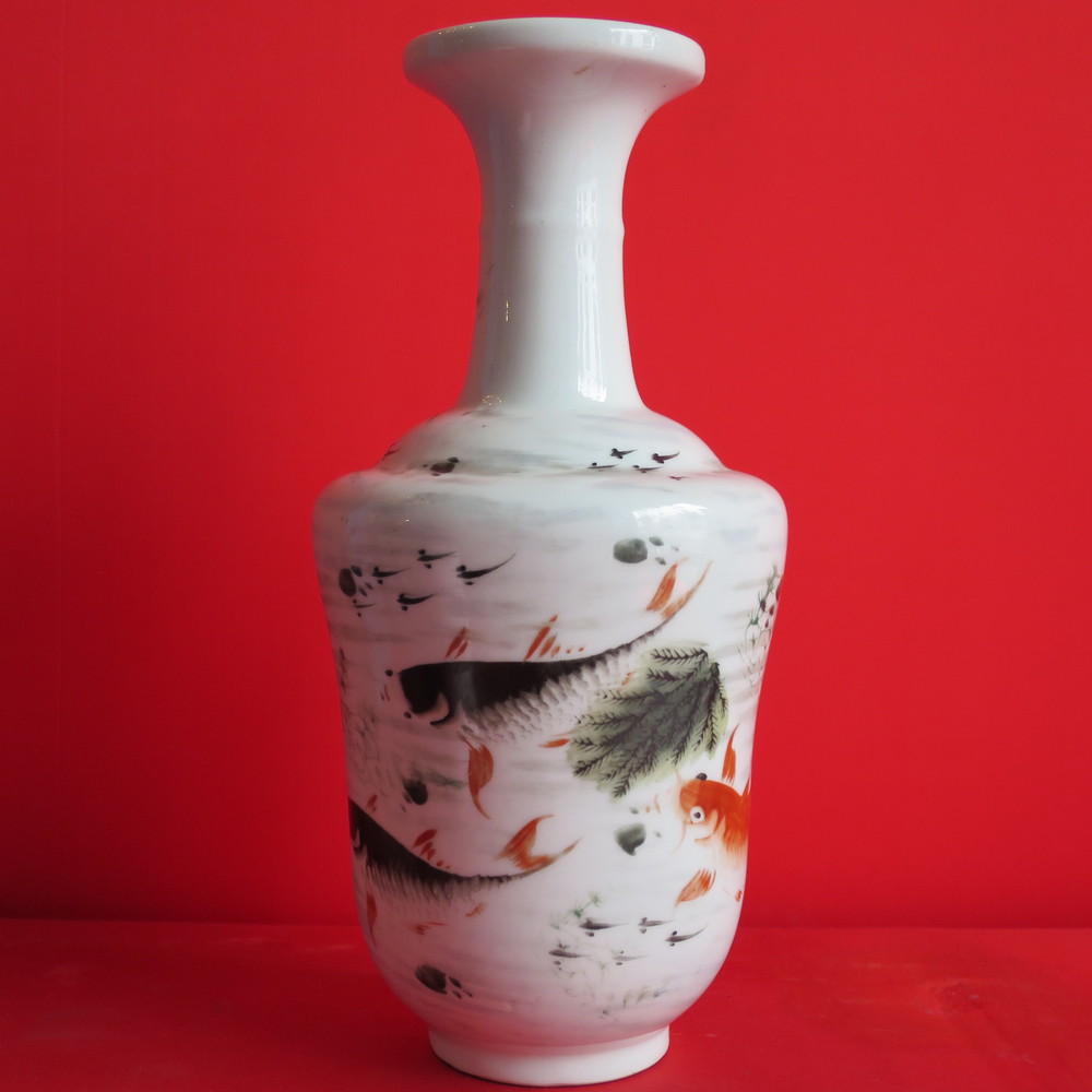 VASO IN PORCELLANA, CINA a balaustro con fondale marino e carpe policrome. Marchio Qianlong sotto la base 23 cm A CHINESE POLYCHROME ENAMELED BALUSTER VASE