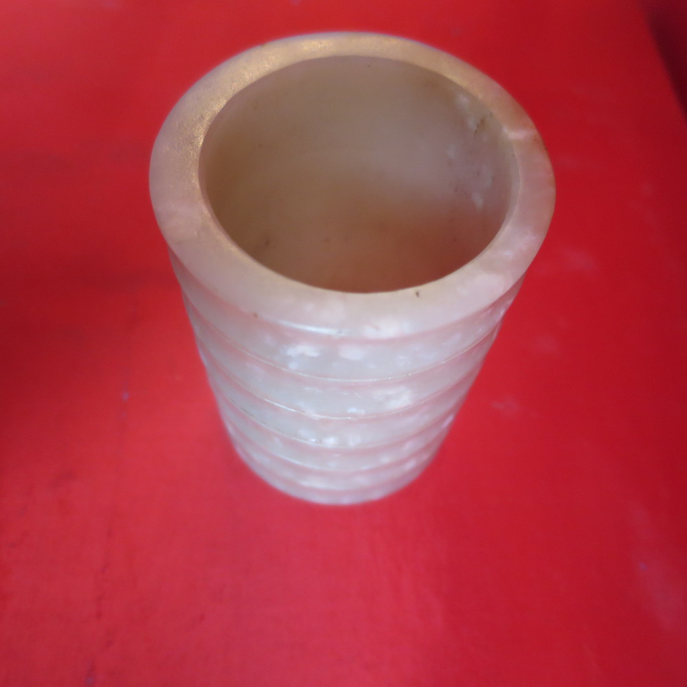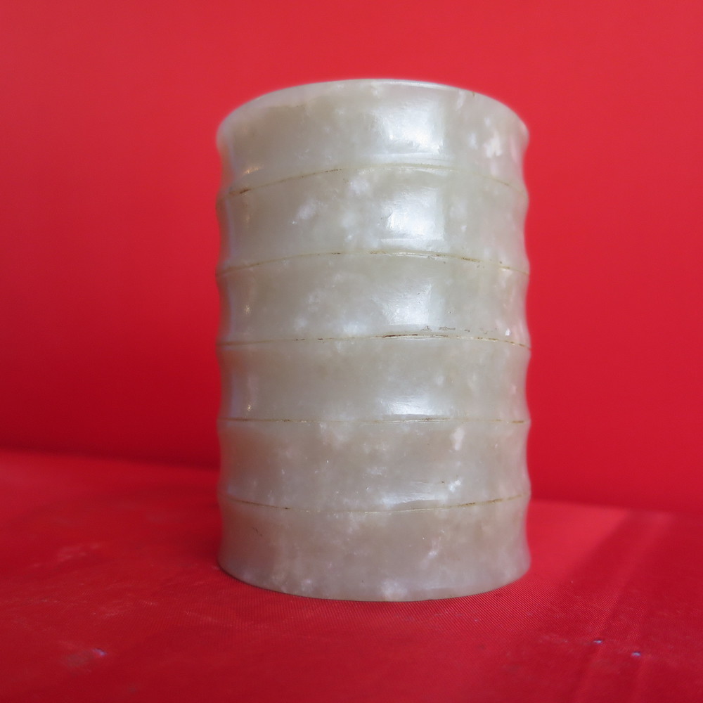 PORTAPENNELLI IN GIADA, CINA, XX SECOLO di forma cilindrica ad imitazione del...