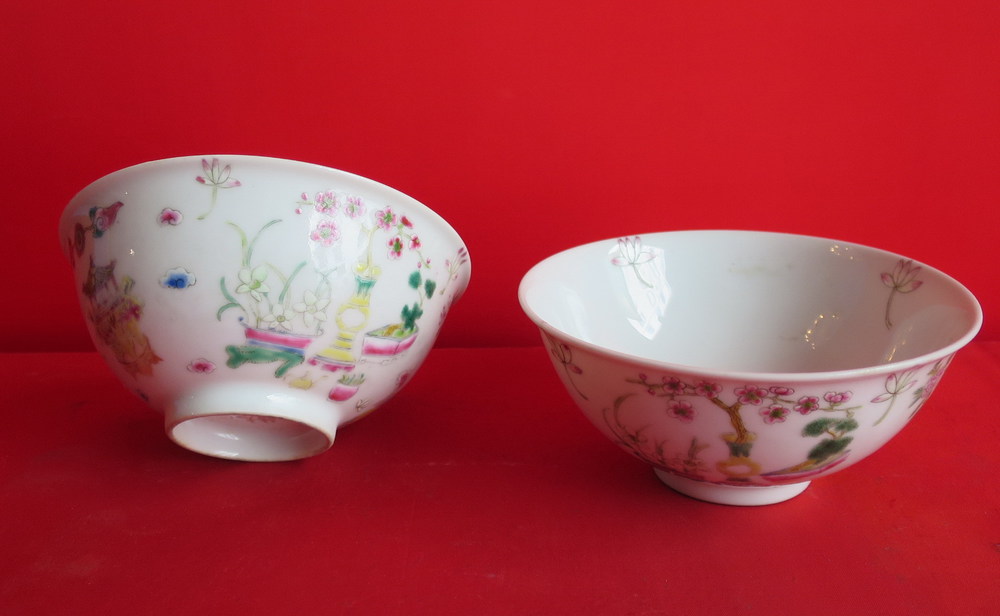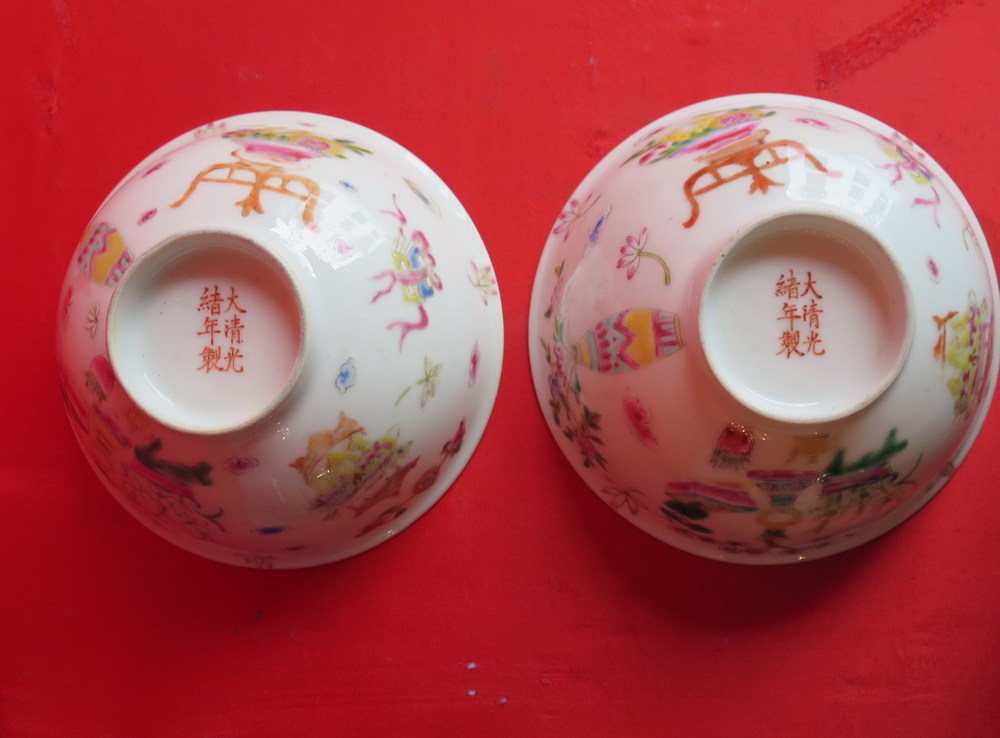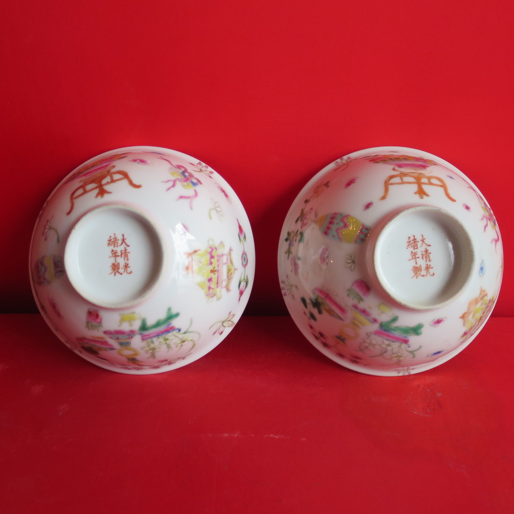 COPPIA DI BOWLS, CINA, XVIII SECOLO in porcellana policroma, marchio sotto la...