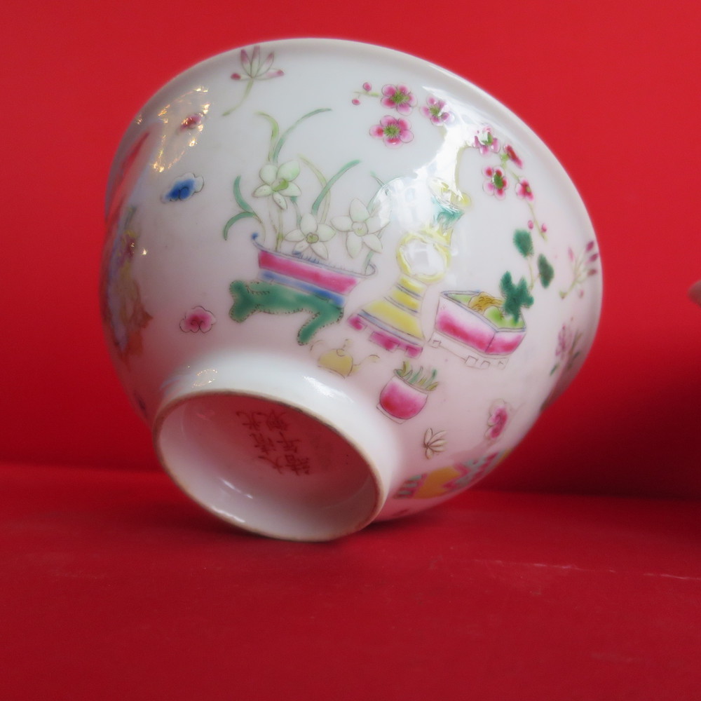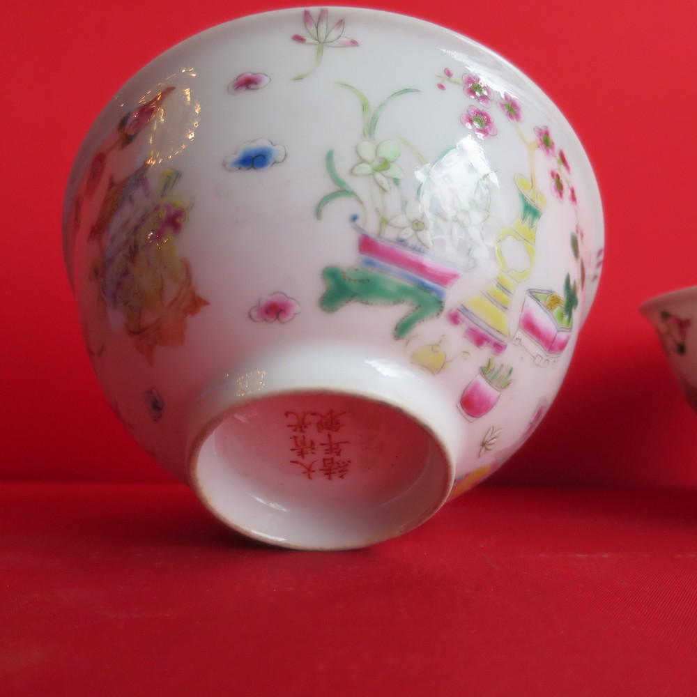 COPPIA DI BOWLS, CINA, XVIII SECOLO in porcellana policroma, marchio sotto la base D 12,5 cm A PAIR OF CHINESE POLYCROME PORCELAIN BOWLS. 19th CENTURY