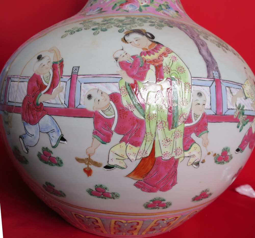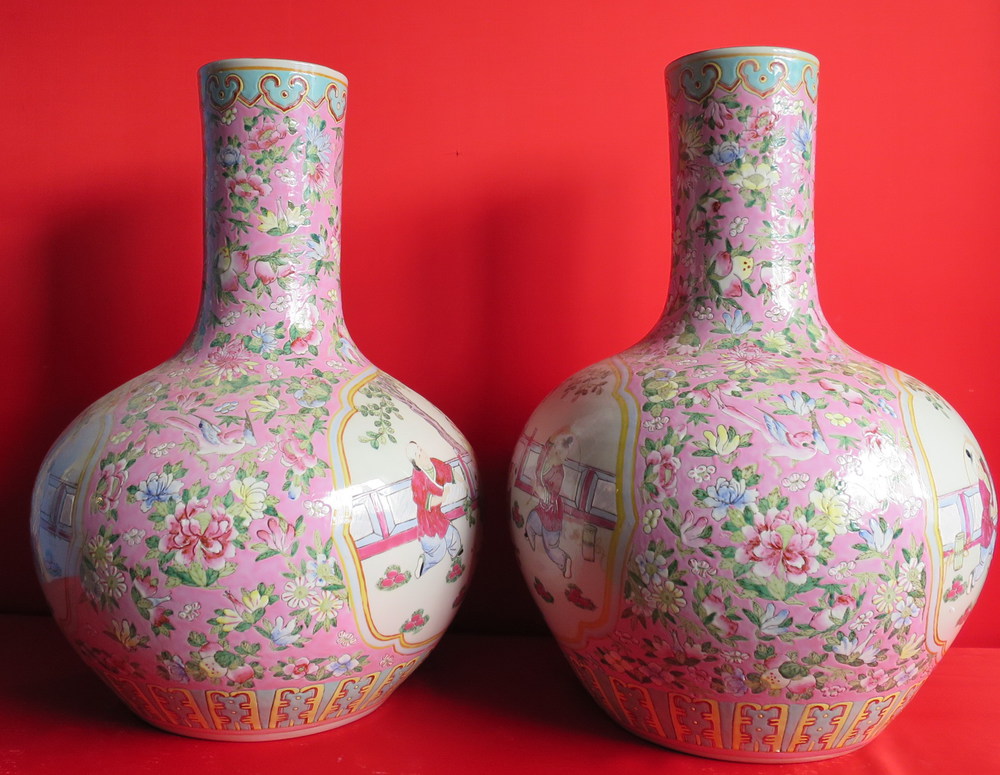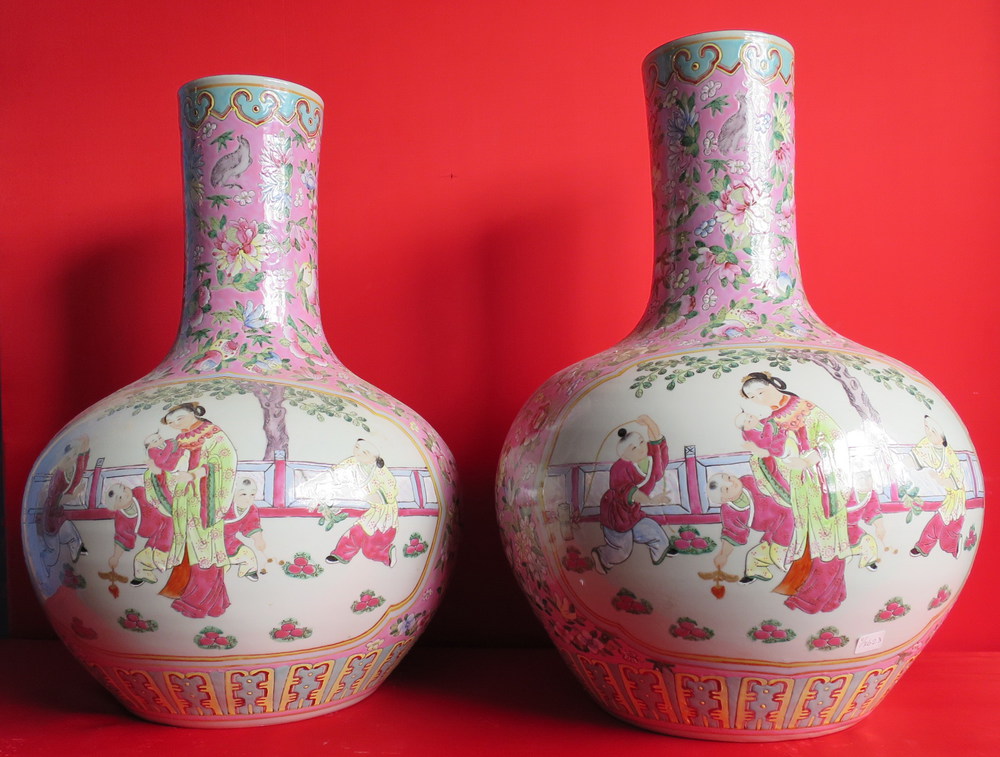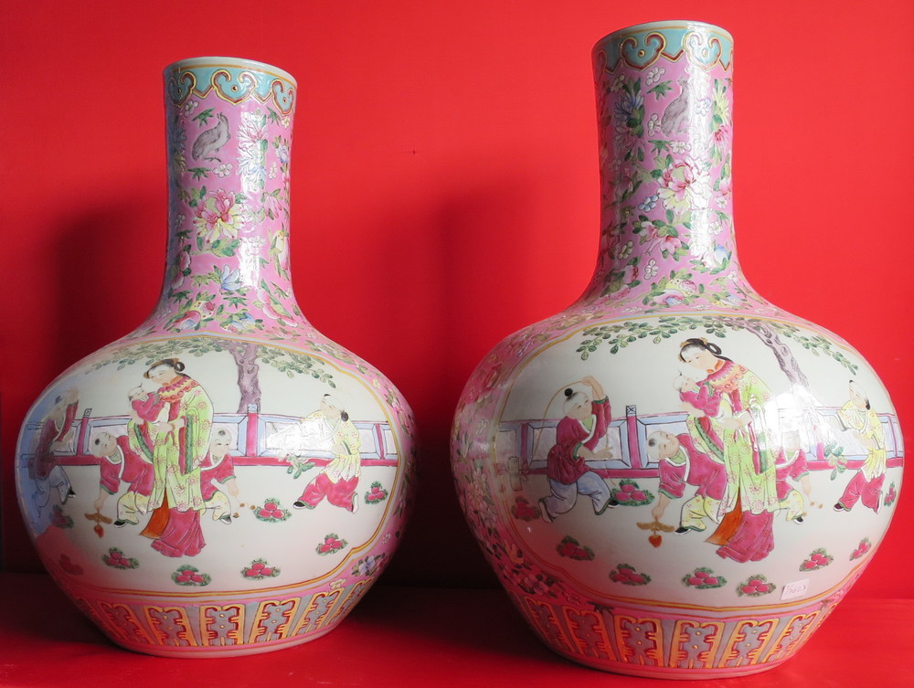 COPPIA DI GRANDI VASI, CINA, XX SECOLO In porcellana policroma con decoro...