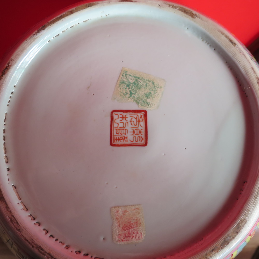 COPPIA DI GRANDI VASI, CINA, XX SECOLO In porcellana policroma con decoro floreale e doppia riserva con scena di vita quotidiana 49 cm ciascuno A PAIR OF LARGE CHINESE POLYCROME VASES. 20th CENTURY