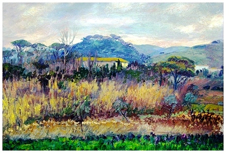 GIO BATTA LEPORI Livorno 1911 – Livorno 2002 Grigio a Monte Rotondo Olio su tavola 42,5 x 64. Firma, titolo, località e misure sul verso + etichetta studio dell’artista. B.A.: 100