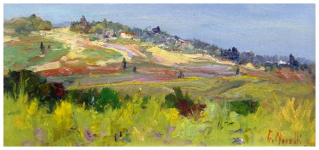 GIAMPIERO NOVELLI Livorno 1954 Senza titolo Olio su tavola 21 x 44. Firma in b. a d.; misure sul verso. B.A.: 50