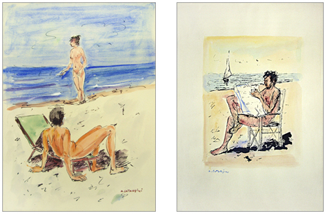 ALFREDO CATARSINI Viareggio 1899 – Viareggio 1993 Lotto composto da 2 opere: Dopo il bagno Litografia dipinta a mano. Firma in b. a d.; sul verso timbro di autentica “Opera grafica di Alfredo Catarsini“ con firma ignota. (50 x 35 foglio e lito) Sulla spiaggia Litografia dipinta a mano. Firma in b. a s.; sul verso timbro di autentica “Opera grafica di Alfredo Catarsini“ con firma Vittorio Greco. (50 x 35 foglio – 31 x 23 ca. lito.) B.A.: 80