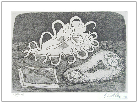 GIUSEPPE VIVIANI Agnano Pisano 1898 – Pisa 1965 Dolci e bambola 1949 3 stati Acquaforte su rame es. XVIII/50. Firma e data in basso a destra; lastra firmata e datata in basso a destra “959 G. Viviani By”. Biffata. (30 x 40 foglio – 19,3 x 26,7 inc.) Tiratura: primo stato 1 es. firmato e datato (1950) su carta Oxford incollata. secondo stato non rintracciato. terzo stato: 50 es. numerati e firmati su carta Cina, Giappone bianca e giallina, Oxford e India incollate + alcuni es. prova firmati su diversi tipi di carta (datati 1951). Pubbl.: “Giuseppe Viviani Catalogo Generale” a cura di Silvio Guarasci Pisa, Editore Saletta d’Arte Viviani s.a.s. Pisa, Stampatore Pacini S.p.a. Pisa, ottobre 2015, p.76. B.A.:A OFFERTA