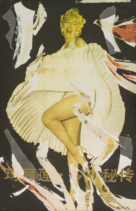 Mimmo Rotella (Catanzaro 1918 Milano 2006) Marilyn Esibizionista 2003 Monotipo - decollage su tela, cm. 122,5x80,5 Firmato in basso a destra; Sul verso: data, titolo e descrizione Autentica dell'Artista su foto.