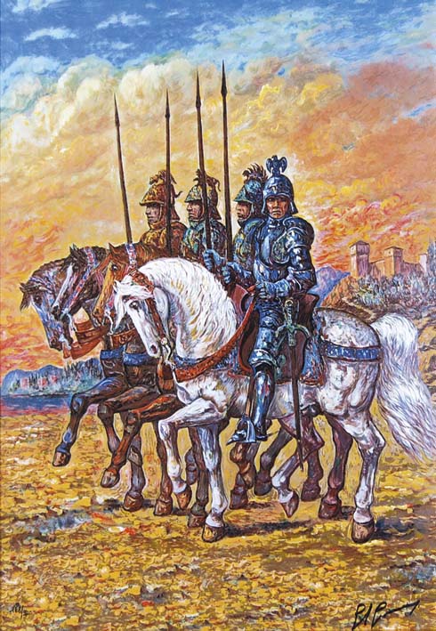 GONZAGA GIOVAN FRANCESCO Milano 1921 - 2007 Cavalieri 2002 serigrafia su tela...