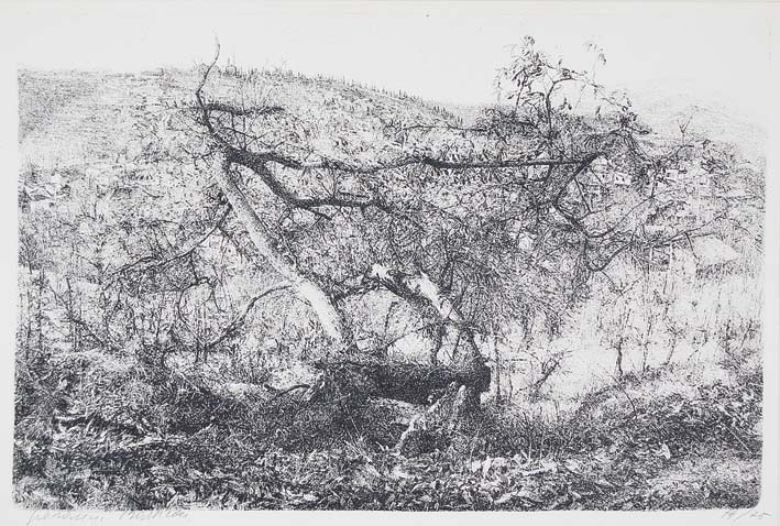 BARBISAN GIOVANNI Treviso 1914 - 1988 Castagneto aquaforte es. 74/75 Misure: 39x60(lastra) - 60x80 (foglio) firma in basso a sinistra tiratura in basso a destra