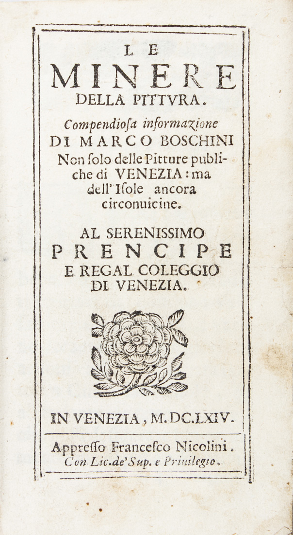 Boschini Marco, Le miniere della pittura. Compendiosa informazione [...] non solo delle Pitture pubbliche di Venezia: ma delle isole ancora circonvicine.