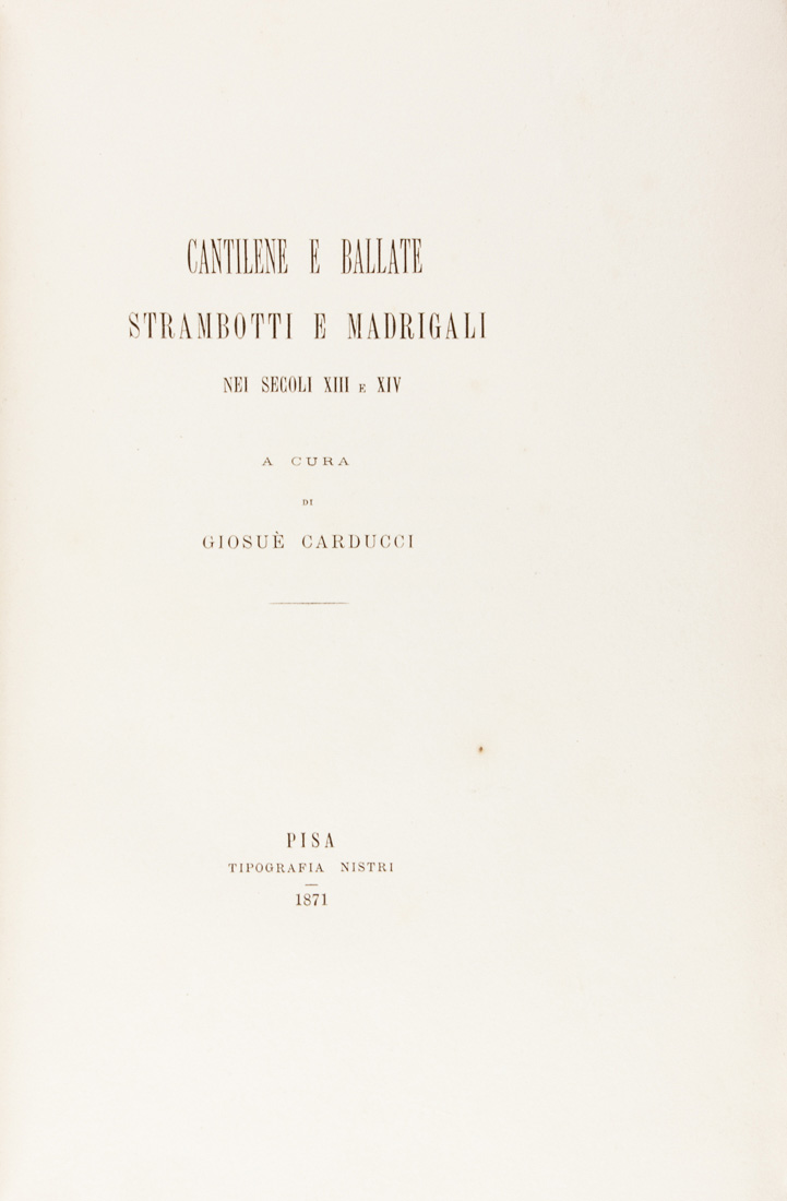 Lot 123 | Carducci Giosuè, Cantilene e ballate, strambotti e madrigali nei secoli XIII...