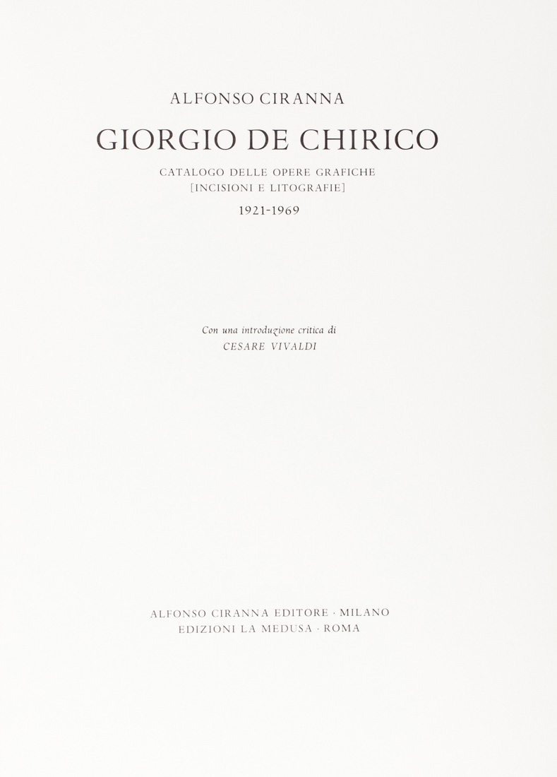 Ciranna Alfonso, Giorgio De Chirico. Catalogo delle opere grafiche [incisioni e litografie] 1921-1969.