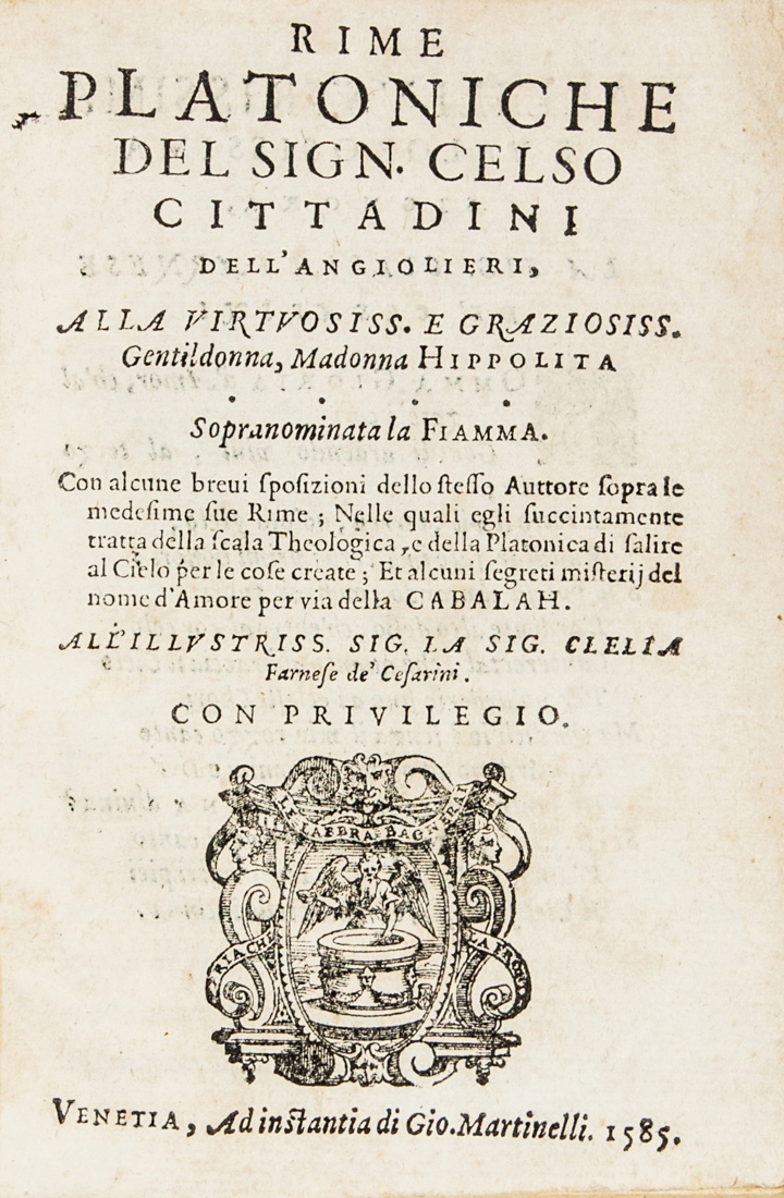 Cittadini Celso, Rime platoniche con alcune breui sposizioni dello stesso auttore...