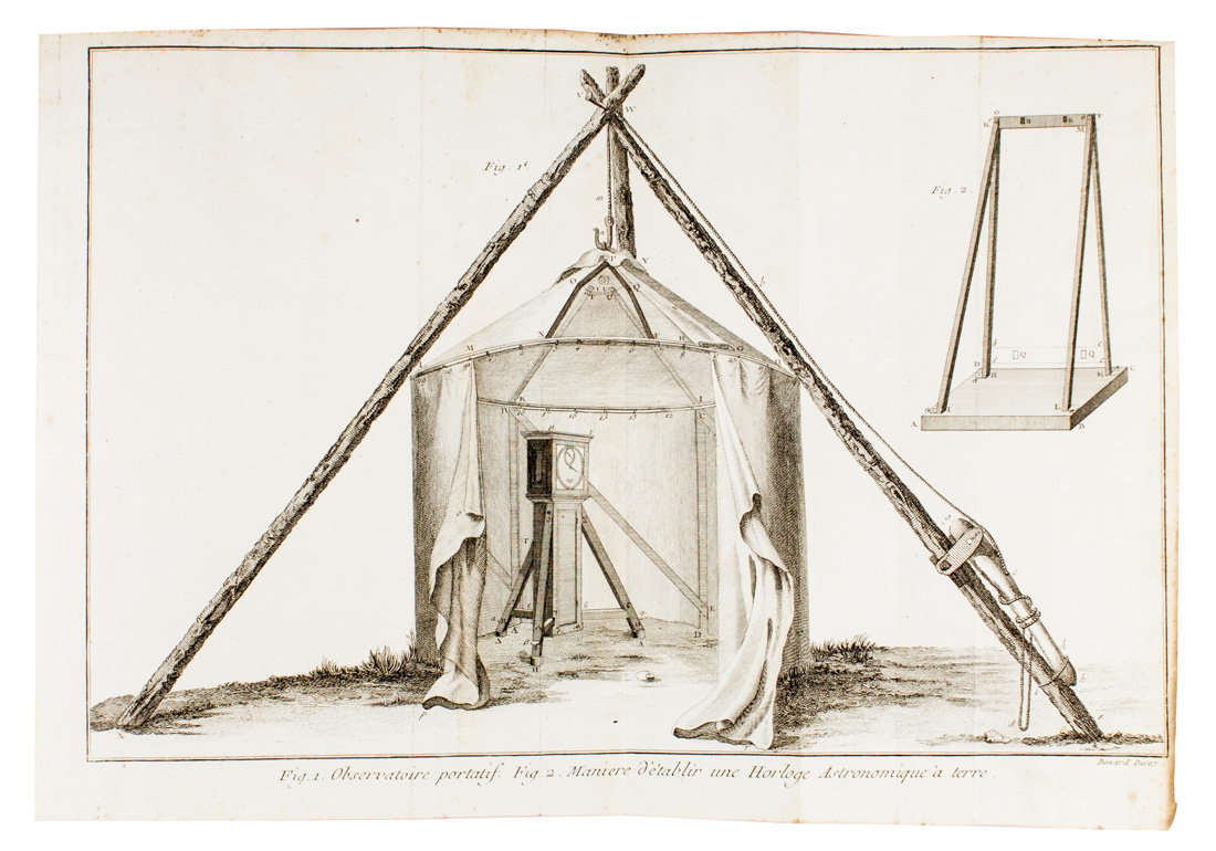 6 volumi di testo in-8° (mm 198x118). Pagine [4], lii, 496; [2], 516; [4], 500; [4], 499, 1 bianca; [4], 423, [1]; viii, 367, [1] e 1 volume in-4° di atlante (mm 283x220) comprendente 1 pagina manoscritta di frontespizio + 66 tavole numerate 1-65, più una tavola 10bis, tutte impresse in calcografia e più volte ripiegate. Atlante con strappetti marginali, più evidenti nelle carte 2 e 50, e con gore occasionali (alle tavole 51 e 54); leggere bruniture. Volumi di testo in ottime condizioni di conservazione. Legatura dei volumi in pieno vitello nocciola con impressioni a motivo fitomorfo in oro al dorso, oltre a titoli e indicazione dei volumi, anch’essi dorati. Tagli rossi, sguardie in carta marmorizzata. Piccole mancanze alle cuffie, cerniere stanche. Legatura dell’atlante in piena pergamena con titolo e decorazioni impressi in oro al dorso. Tagli dorati. Difetti ai piatti, alcune macchie.(7)