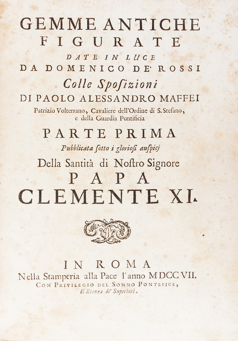 De Rossi Domenico, Gemme antiche figurate date in luce [...] colle sposizioni di Paolo Alessandro Maffei [...], parte prima (-quarta).