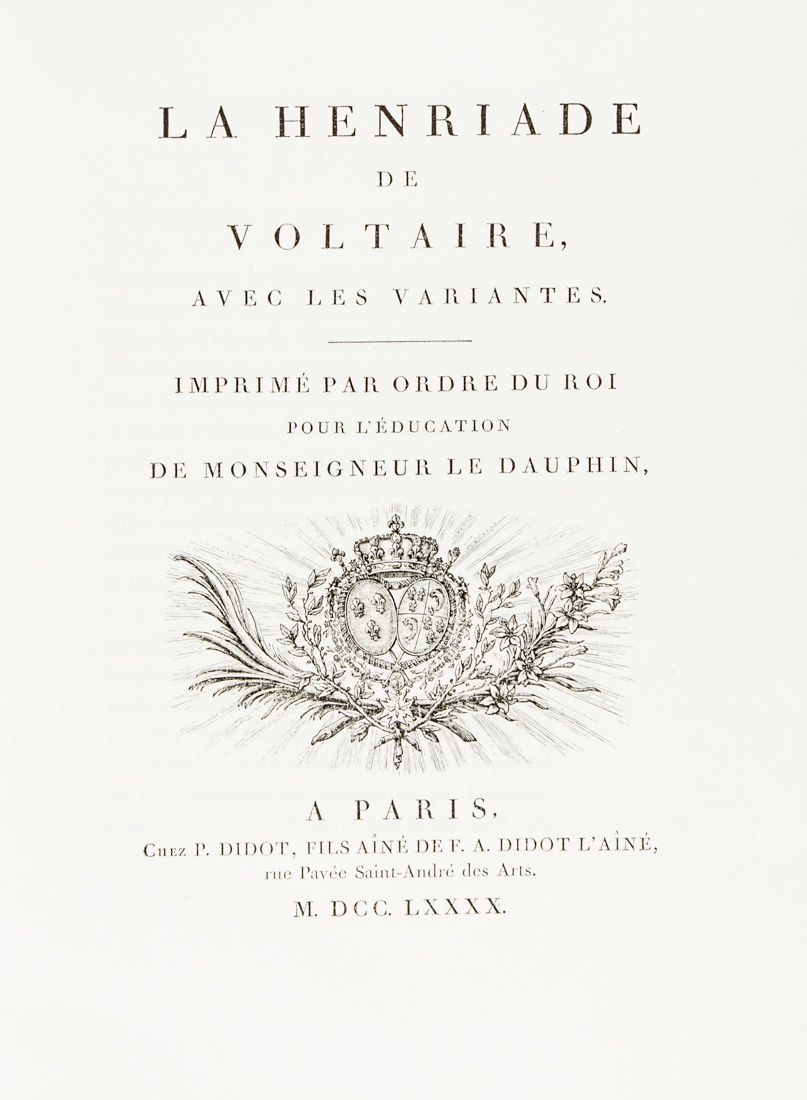 Lot 169 | Voltaire François-Marie Arouet (de), La Henriade [...] avec les variantes.A...