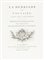 In-4° (mm 306x230). Pagine XL, 222, [2]. Contiene la carta con il Brevet. Edizione stampata in sole 250 copie in quarto. Ottimo esemplare. Legatura coeva in marocchino nocciola con cornice di gusto neoclassico riquadrata da filetti impressa in oro ai piatti e altra bordura a fregi floreali più interna sempre dorata, dentelles alle unghiature, titoli dorati su tasselli e ricco decoro al dorso; tagli dorati. Lievi spellature al piatto posteriore.