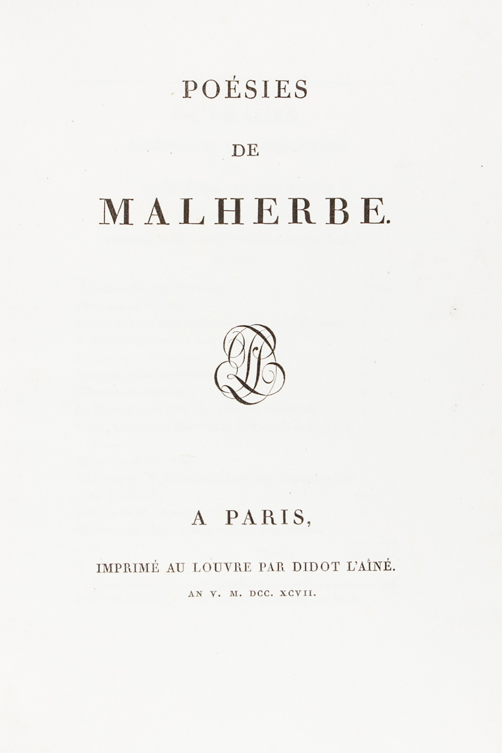 Malherbe François de, Poésies.A Paris: Imprimé au Louvre par Didot l'Aîné,...