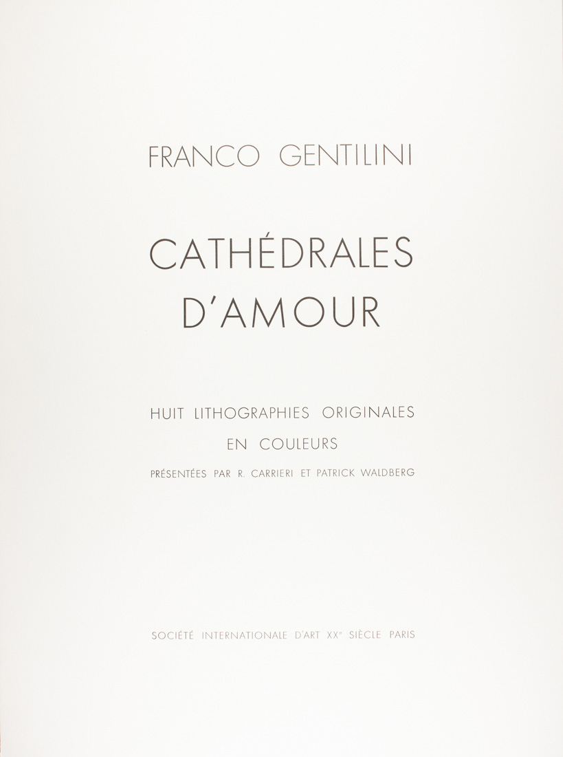 Gentilini Franco, Cathédrales d'Amour. Huit litographies originales en couleurs présentées par R. Carrieri et Patrick Waldberg.