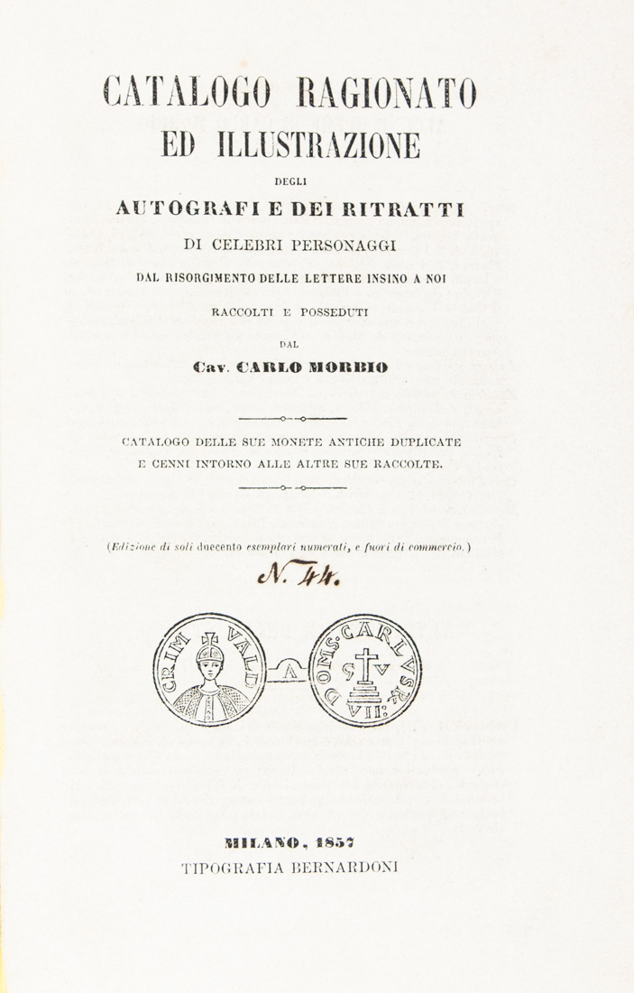Morbio Carlo, Catalogo ragionato ed illustrazione degli autografi e dei...