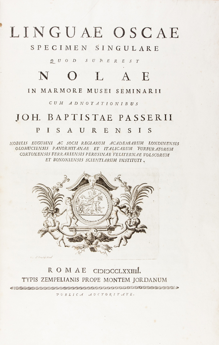 Passeri Giovanni Battista, Linguae Oscae specimen singulare quod superest...